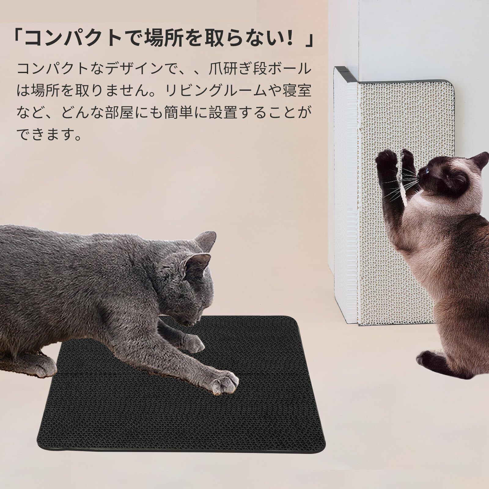 【ストレス解消】壁に貼って、猫ちゃんのストレス解消。来客などでストレスを感じたときや、寝起きなどに、ストレスを少しでも減らすし、気分を切り替えるために爪とぎをすることもあります。ですから、へストレス解消や運動不足改善できるので、猫ちゃんへの欠かせないものです。
