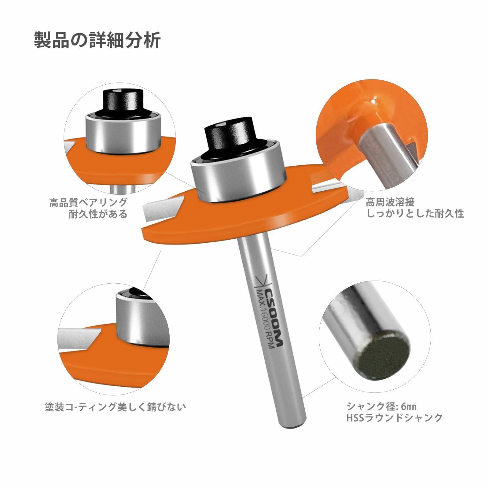 CSOOM ビスケットカッター 6mm轴径 オレンジ色トリマビット 木工用 電動工具 ビスケットトリマー ビスケットジョイントスロットカッタージョインティング/スロッティングルータービット 切削工具 ジョイントカッター T 型ルータビット