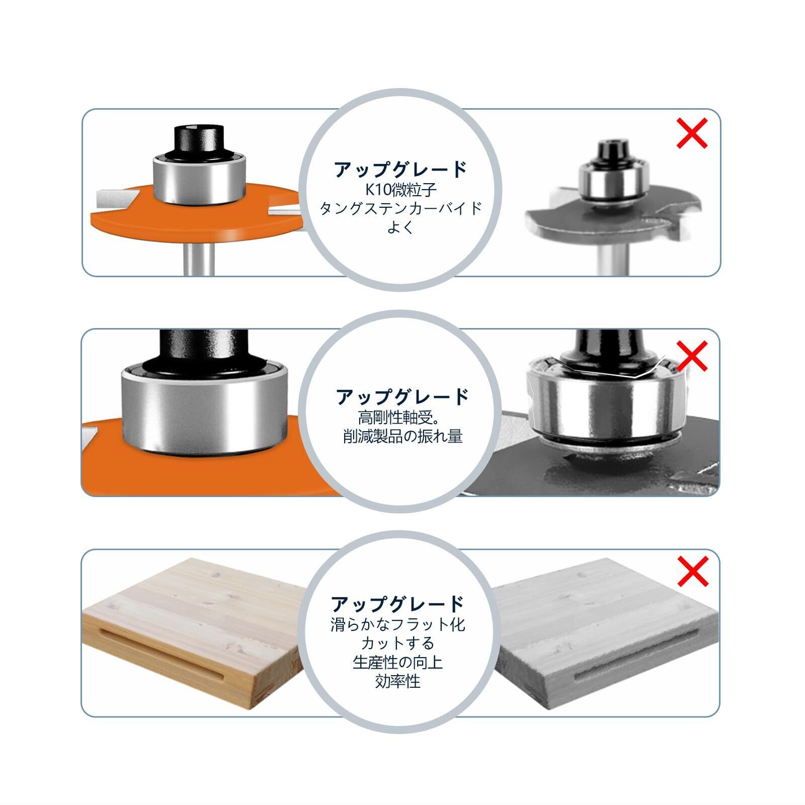 ●【先進的な塗装技術】刃物は清潔で耐腐食性があり、寿命を延ばします。ほぞカッターはベッド、戸板、窓などの家具の組み立てに適しています。トリマービットは超硬合金を使用しており、スムーズな切断と優れた切れ味、耐久性を提供します。詳細な寸法は写真を参照してください。