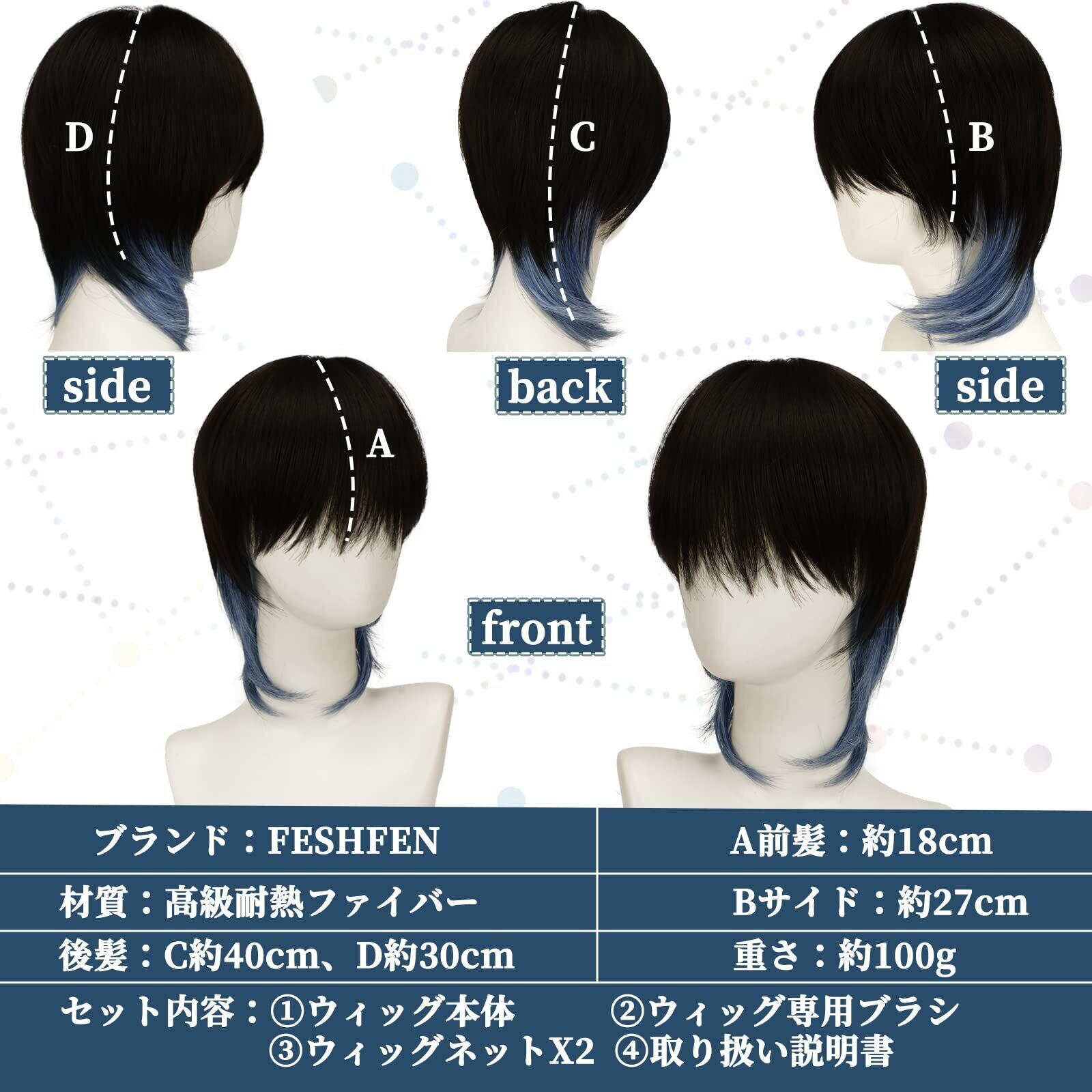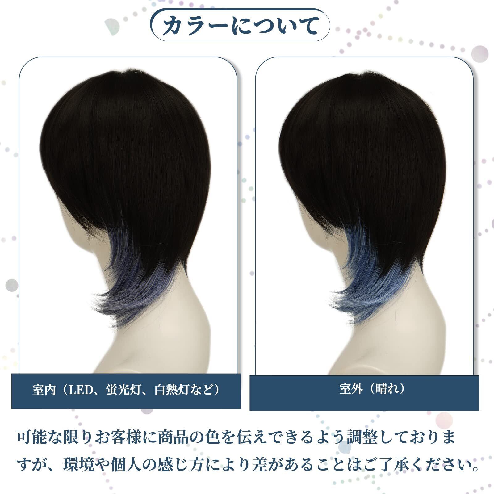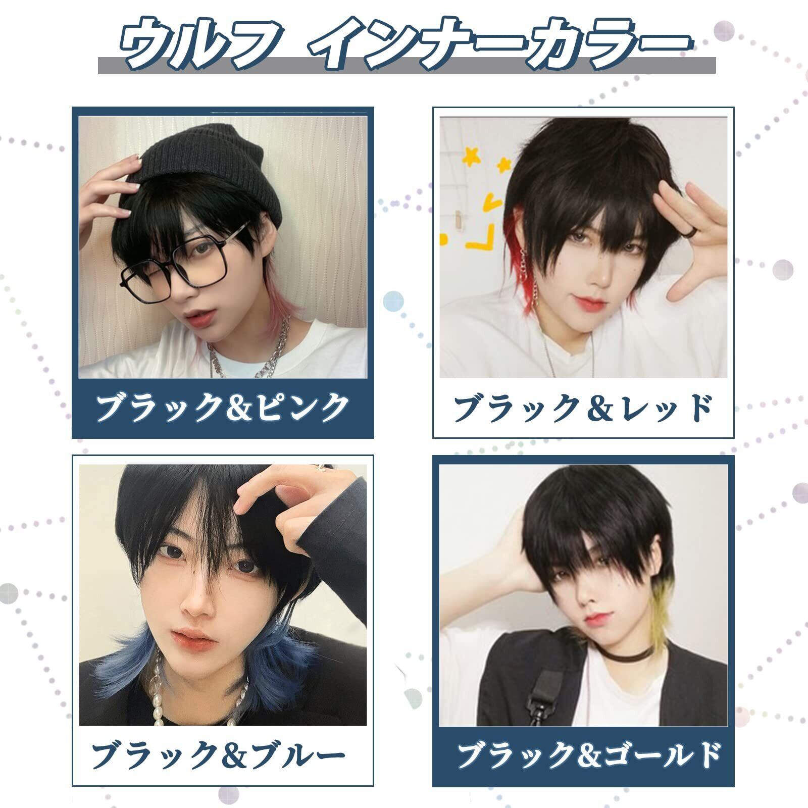 FESHFEN 人工毛 ウィッグ メンズ かつら ショート ウルフ インナーカラー フルウィッグ 男装 黒 男性 原宿 イケメン ハンサム 自然 小顔 耐熱 人気 ファッション イメチェン 男女兼用 短髪 ネット/櫛付き ウルフーブルー