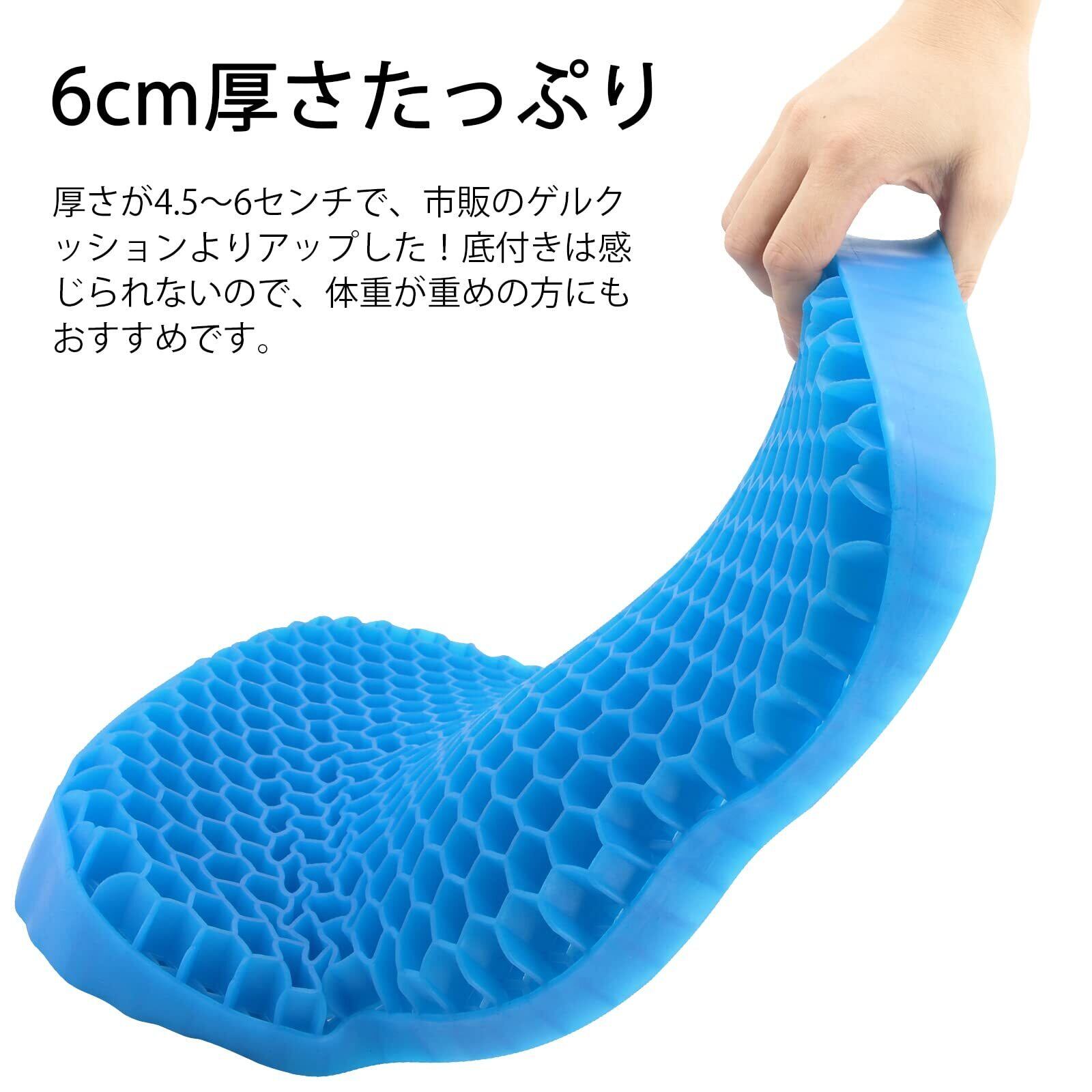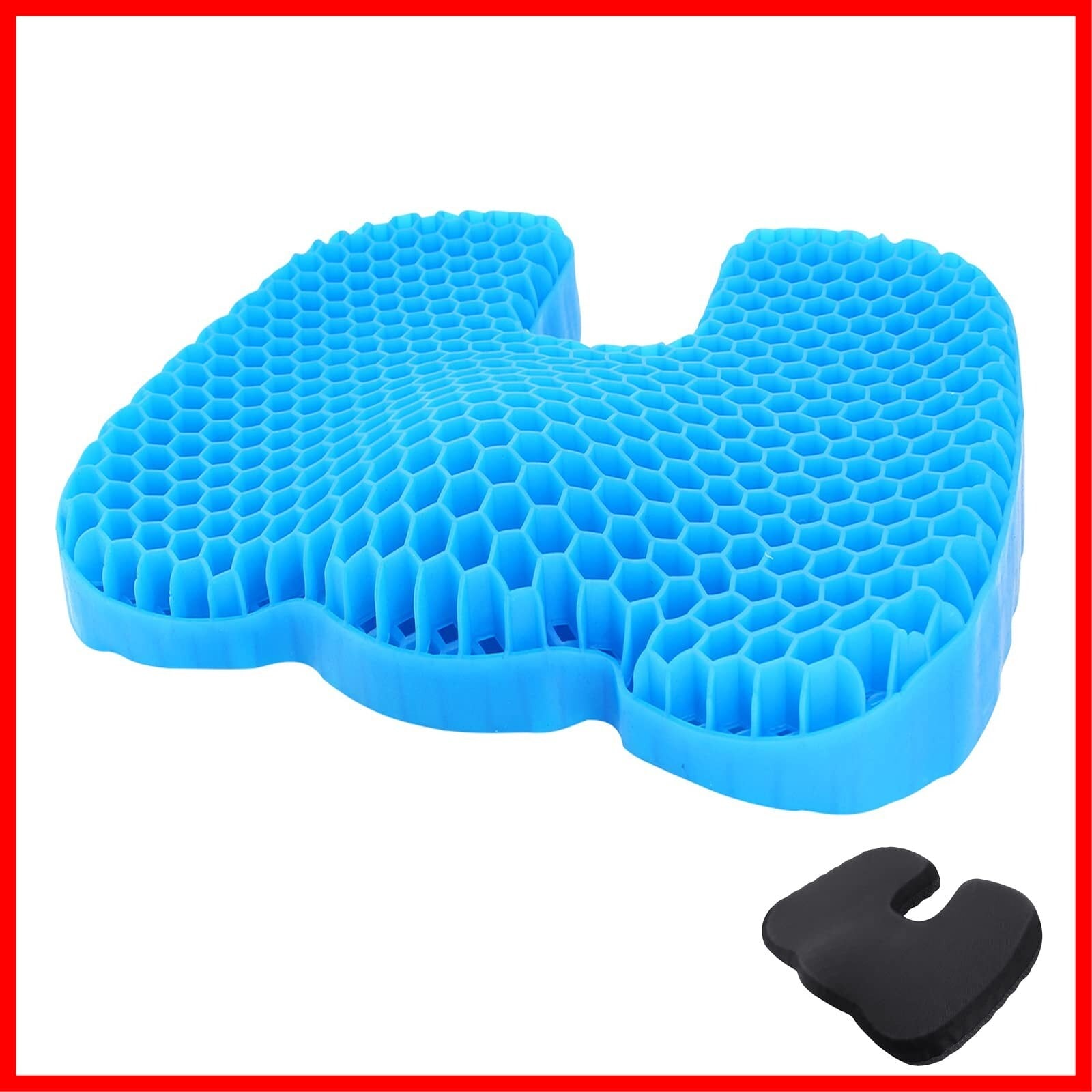 Perphin ゲルクッション U型 座布団 椅子 クッション 姿勢調整 体圧分散 ジェルクッション 蒸れない 立体構造 滑り止め 洗える 弾性 柔軟性 耐久性 オフィス 在宅勤務 テレワーク 運転席 車椅子に適用 カバー付き ブルー 41×33×6cm