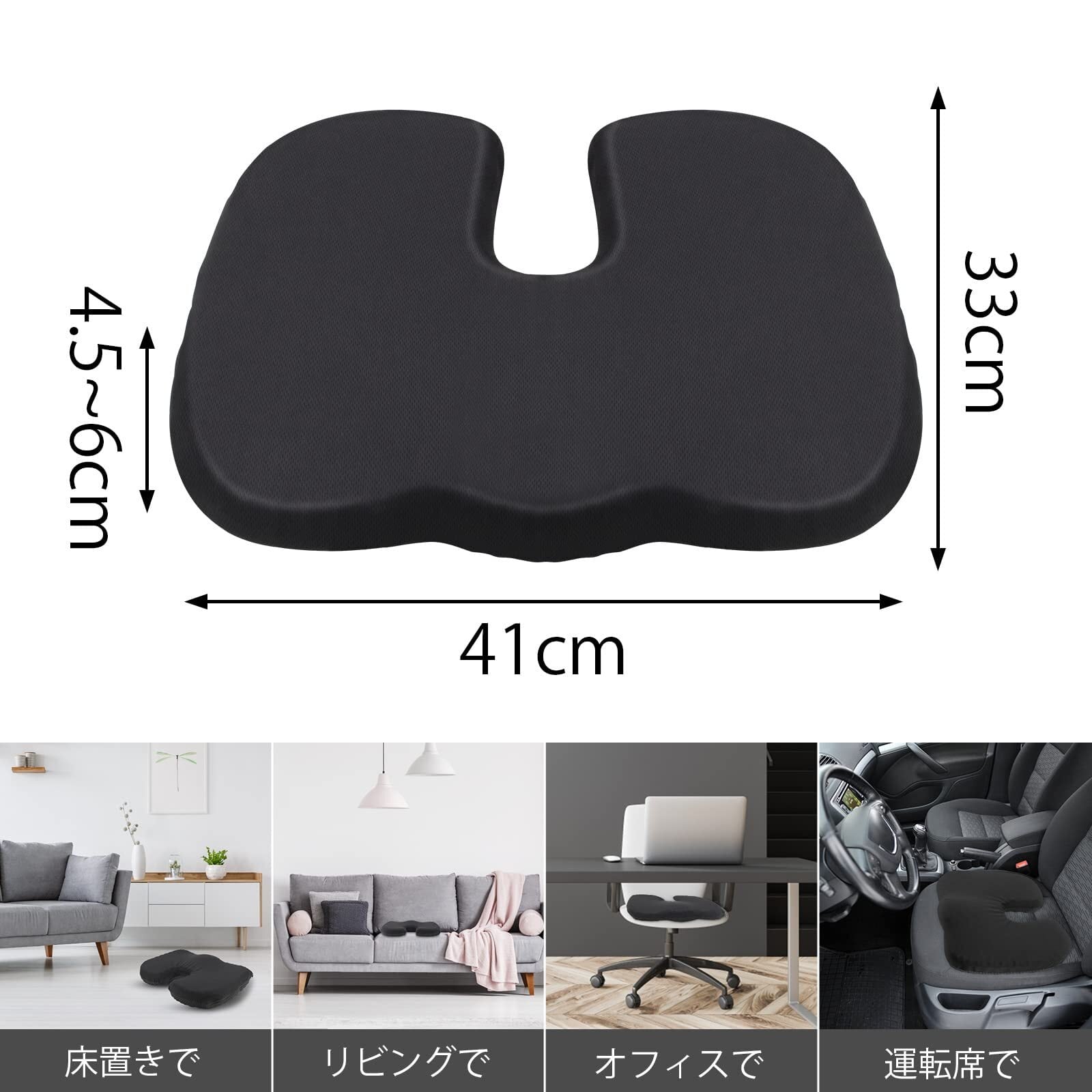 体圧分散・姿勢調整: U字形のゲルクッションで、長時間座っても体に負担がかからないように支えてくれます