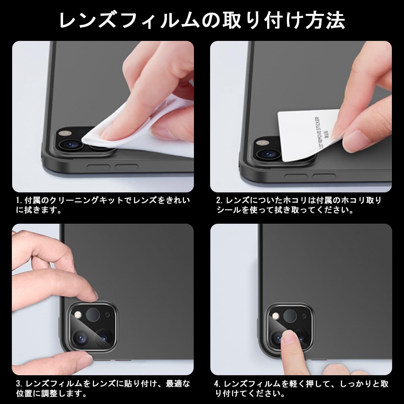 【対応機種】 iPad Pro M4 11インチ(2024)、iPad Pro M4 13インチ(2024)、iPad Pro 12.9インチ (2022/2021/2020) 、iPad Pro 11インチ (2022/2021/2020) 専用ガラスレンズフィルムです。(他のiPadモデルと互換性がありません、購入前にiPadの機種を確認してください。)