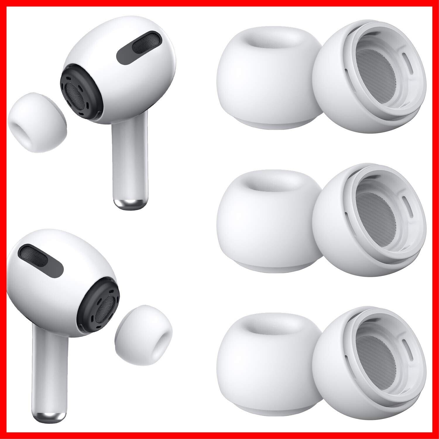 優れたノイズリダクション機能: YUWAKAYI Airpods pro交換用イヤーチップには、2つのノイズリダクションホールが側面にあります。これはオリジナルと同じです (他のシリコンイヤーチップには付属していません)。