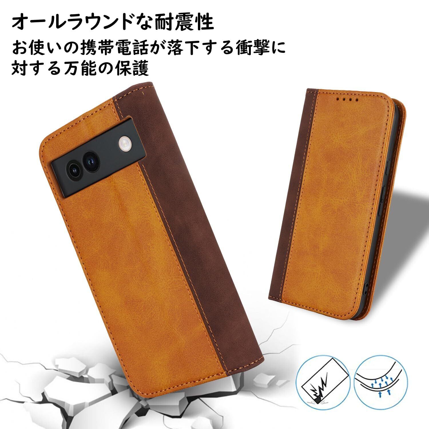 Havaya Google Pixel 8a ケース pixel 8a ケース ピクセル8a ケース グーグル スマホケース docomo 手帳型 au 耐衝撃 カバー SoftBank マグネット式 カード収納 スタンド機能 レザー -イエロー+ブラウン
