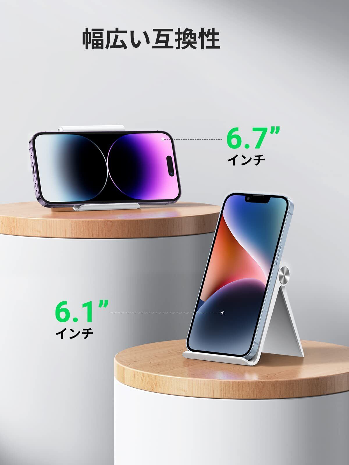 UGREEN スマホスタンド 卓上用 携帯電話スタンド Sサイズ ABS素材 iPhone 13/12/mini/Pro/ProMax/スタンド 折りたたみ式 100°角度調整可能 4~7.9インチのiPhone Androidスマホ タブレットに適用 (白)