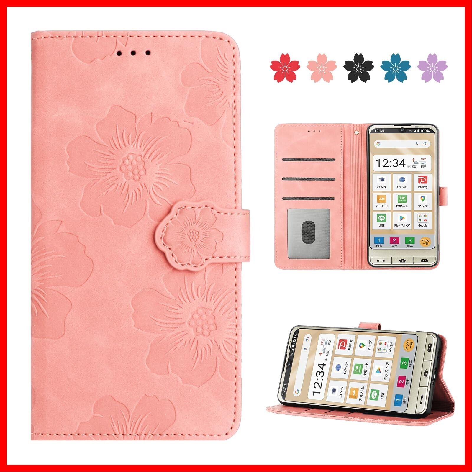 シンプルスマホ7 / シンプルスマホ6 ケース 手帳型 人気 カバー simple sumaho6 A201SH / BASIO active SHG09 / Basio active2 SHG12 ケース 手帳型 高級PUレザー 財布型 シンプルスマホ6 A201SH ケース 手帳型 かわいい美しい桜の柄 A201SH 携帯カバー スマホケース カード収納 マグネット式 スタンド機能【ピンク】