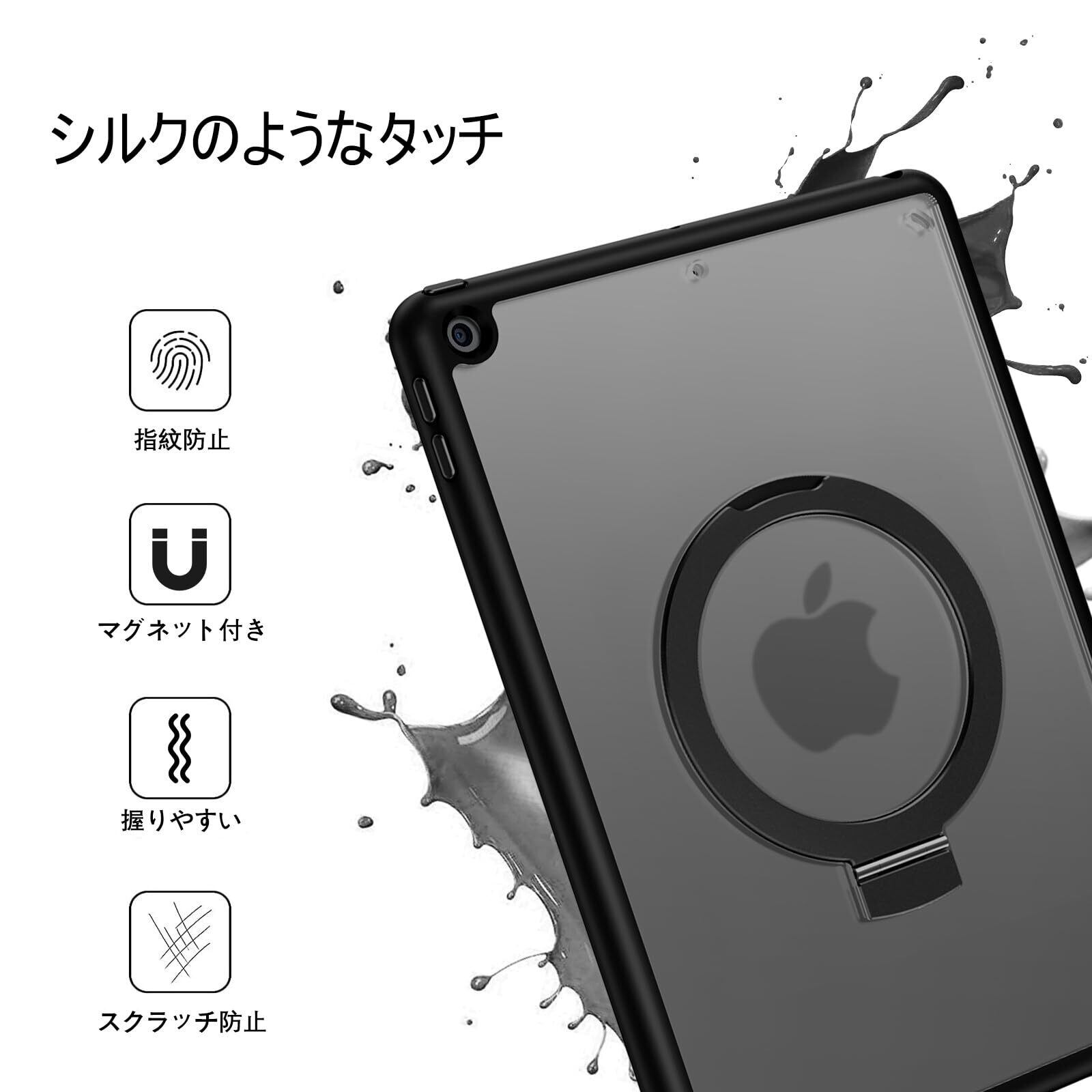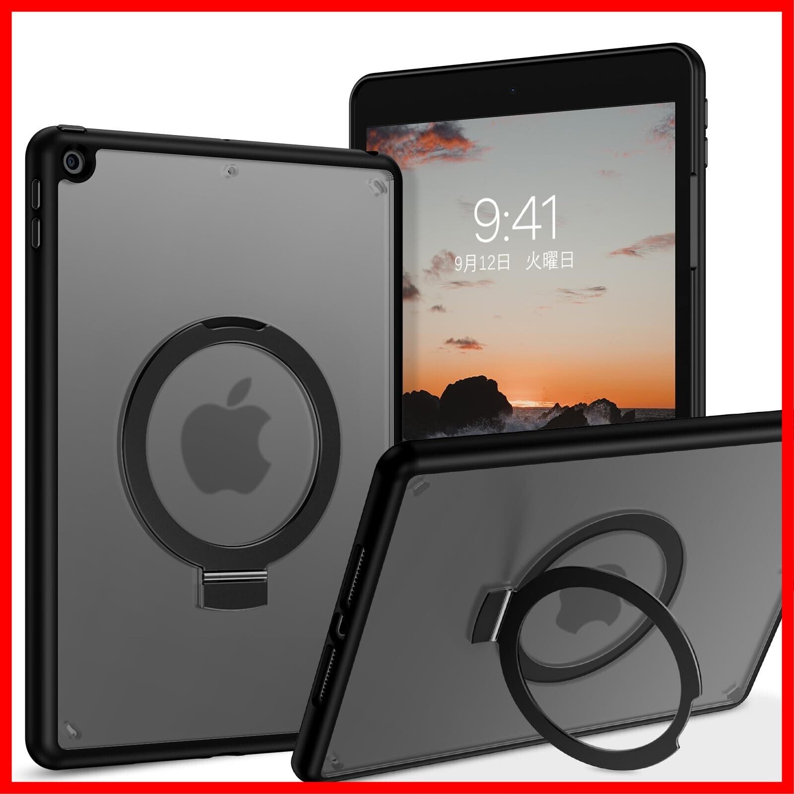 VENINGO iPad 9世代 ケース 10.2インチ ipad ケース 第9/8/7世代通用(2021/2020/2019モデル) 耐衝撃 隠しスタンド リング付き 半透明 黄変防止 指紋防止 薄型 マット仕上げ 一体感 着脱簡単 TPU+PC ハードカバー ブラック