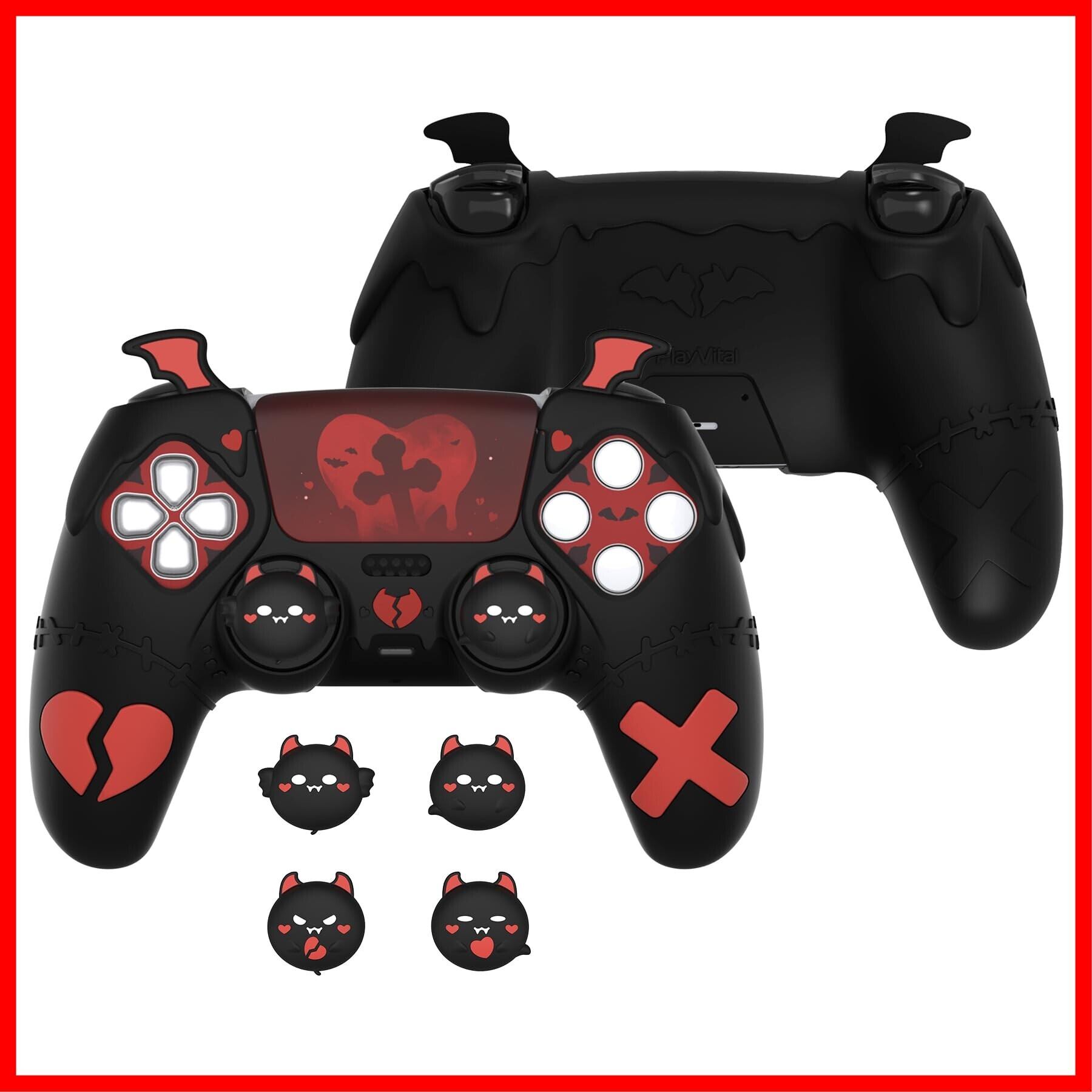 PlayVital Gothic Imp ps5コントローラー対応用可愛い保護カバー、サムグリップキャップ4個やステッカー6枚付属、ps5 コントローラー対応用グリップカバー、公式ps5充電ステーション対応【ブラック】