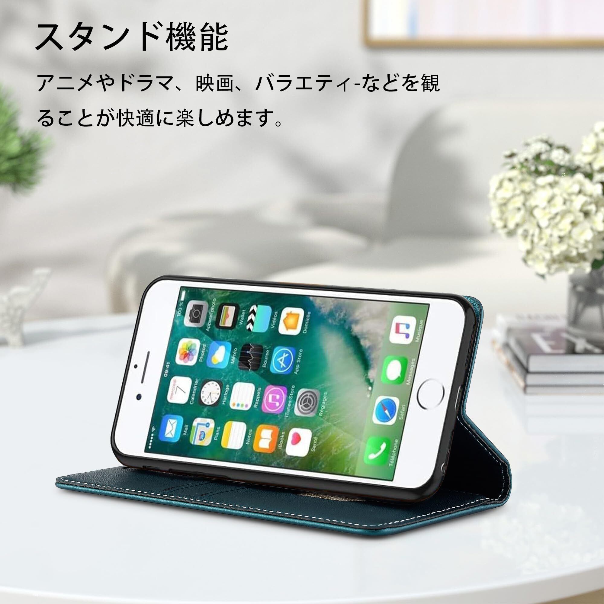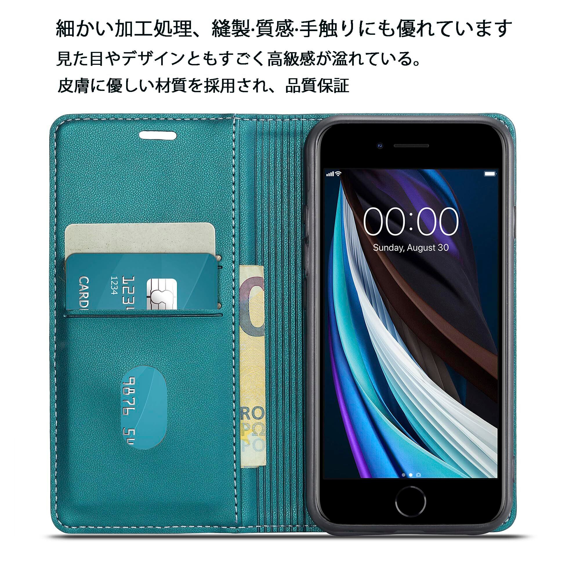 iPhone SE3 ケース手帳型 第3世代 iPhone SE2ケース第2世代 iPhone8ケース アイフォン7 手帳型ケース iPhone se ケース アイフォンseケース RFID磁気防止 真珠光沢レザー スマホケース マグネット スタンド機能 カード入れ 耐摩擦 薄型(iphone7/8/se2/se3 対応)ビリジアンブルー