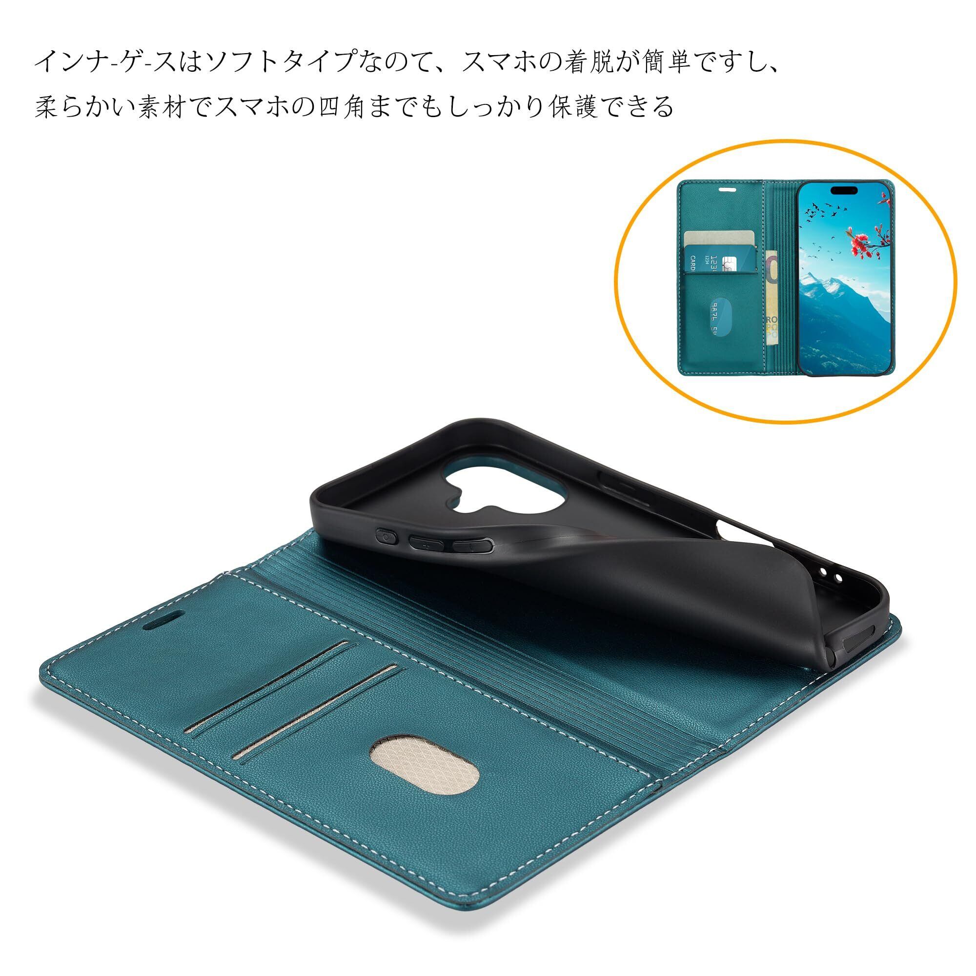 ・パール光沢のあるPUレザーを使用しており、柔らかく手触りが良いだけでなく、長時間の使用でも色落ちや劣化を防ぎ、天然皮革のような高級感と柔らかさを持ちながら、耐久性にも優れています。環境にも優しく、さらに耐水性や耐汚れ性も備えています。インナーケースは柔らかいソフトTPU素材を採用して、スマートフォンに完全にフィットするように設計されています。