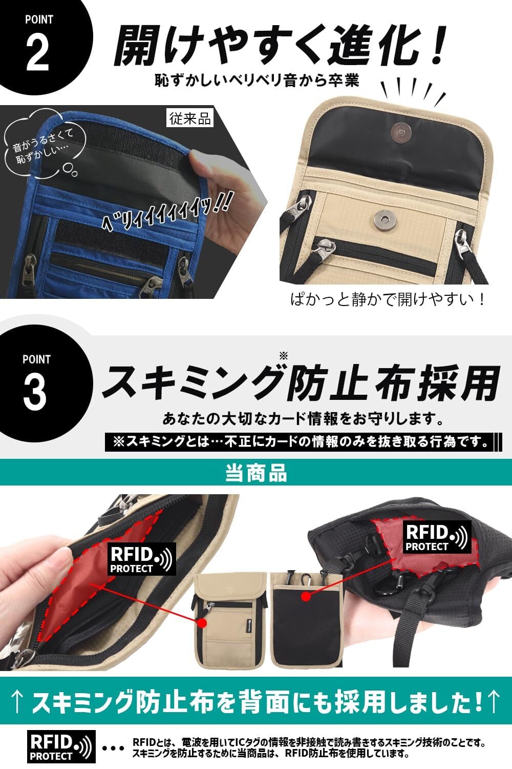 【磁石を使った静かな開閉!】『パスポートケースを開けるときのマジックテープの音が恥ずかしい、、』と従来品にて当スタッフも悩んでいました。そこで、マグネットボタンにすることで静かに開閉できるパスポートカバーが完成!【スキミングからしっかり守ります!】正面のみRFID素材を使用しているものが従来品には多いですが、当製品は背面もRFID素材を採用し、スキミング防止を強化!大事な個人情報をしっかり守るセキュリティーポーチです! .