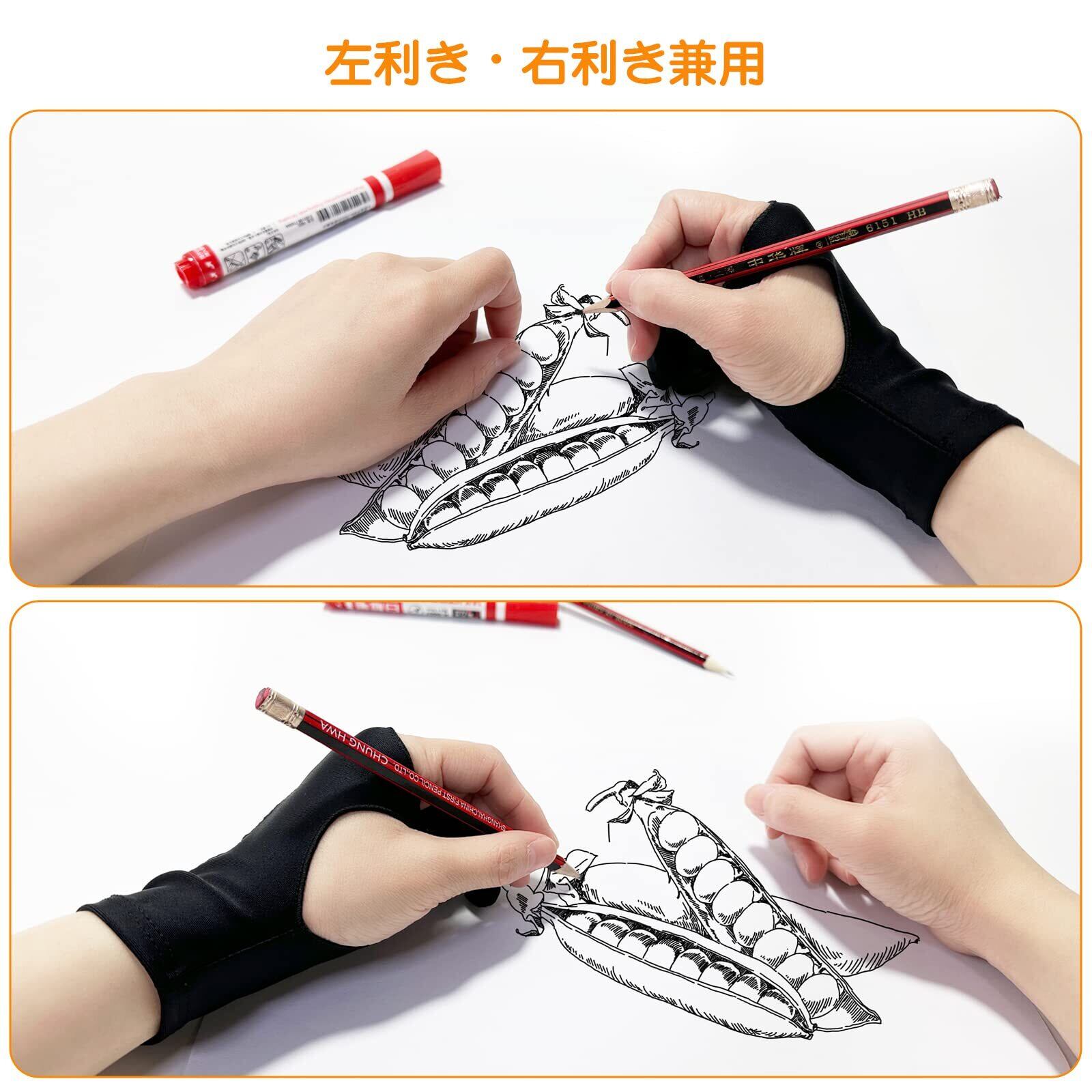 Kanoki 二本指 グローブ 2枚入 ペンタブレット 手袋 8x20.5cm 絵描き 手袋 両利き通用 ペンタブレット 誤作動防止 防汚 通気性 超軽量 快適 ライクラ繊維 グローブ 男女兼用 左利き 右利き