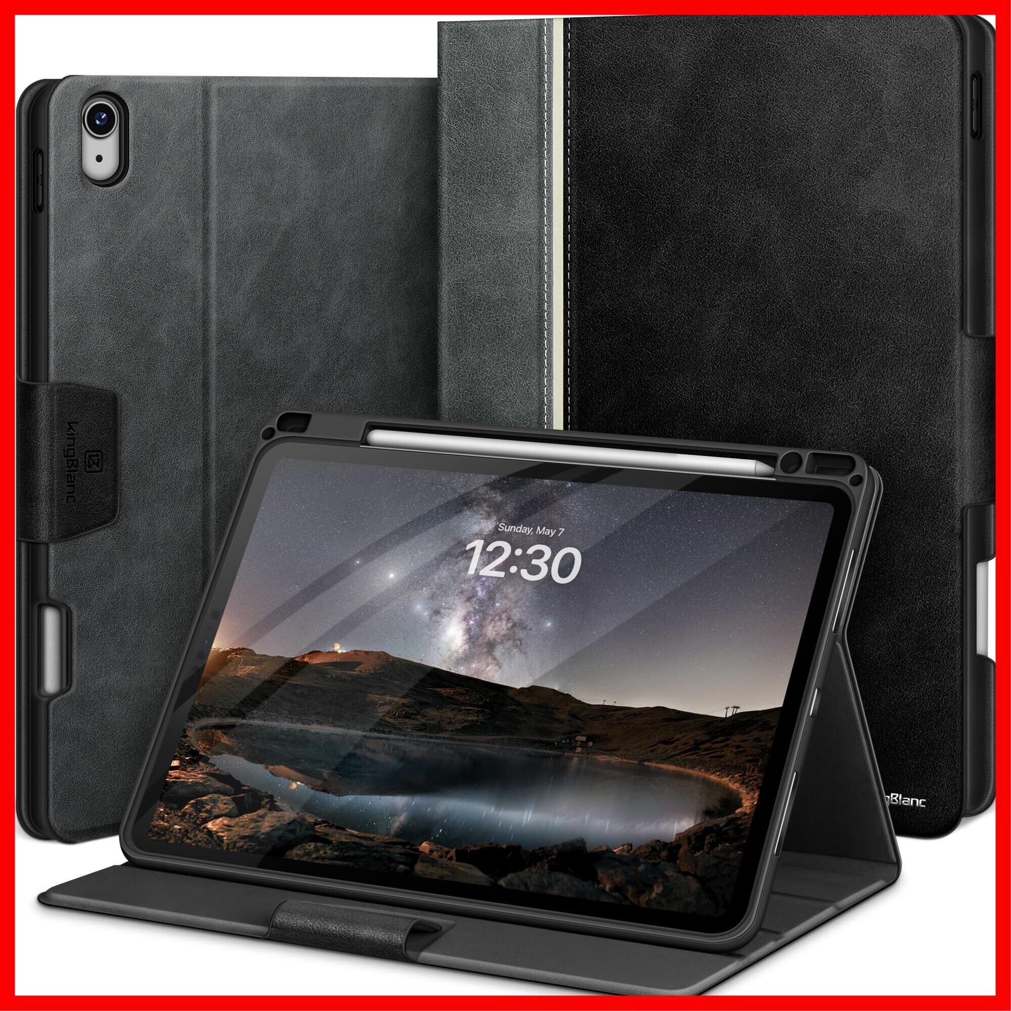 KingBlanc iPad Air 13インチ ケース M3 2025・M2 2024 専用 手帳型 ペン収納可 Apple Pencil Pro/USB-C対応 オートスリープ ペンシルホルダー付き 高級PUレザー製 絵描き角度 全面保護 耐衝撃 傷つけ防止 頑丈 カバー, ブラック