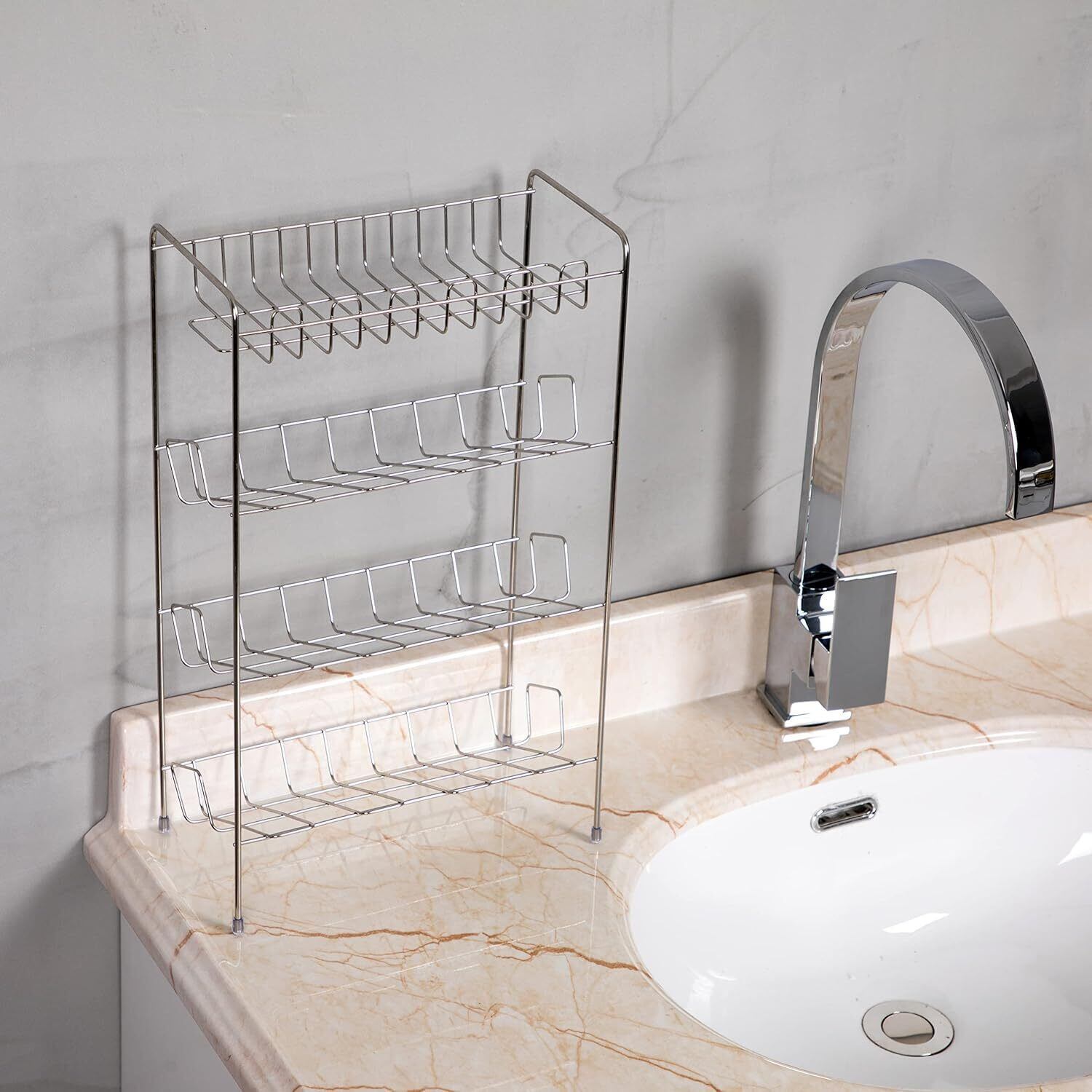 Umemigusa バスルームラック ステンレス 4段 ボトル最大9本収納 サビに強い 錆びにくい 丈夫 省スペース スリム 浴室用ラック お風呂 洗面台 キッチン 小物 収納 (シルバー4段)
