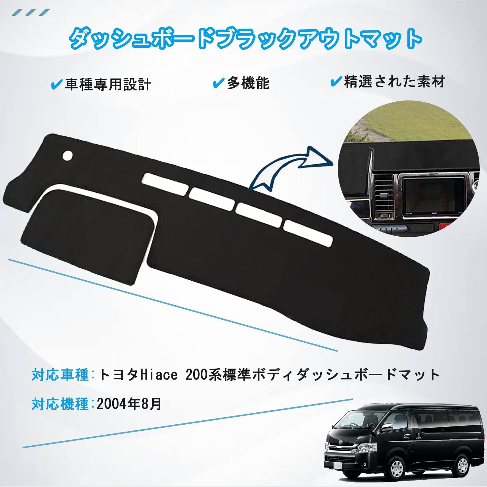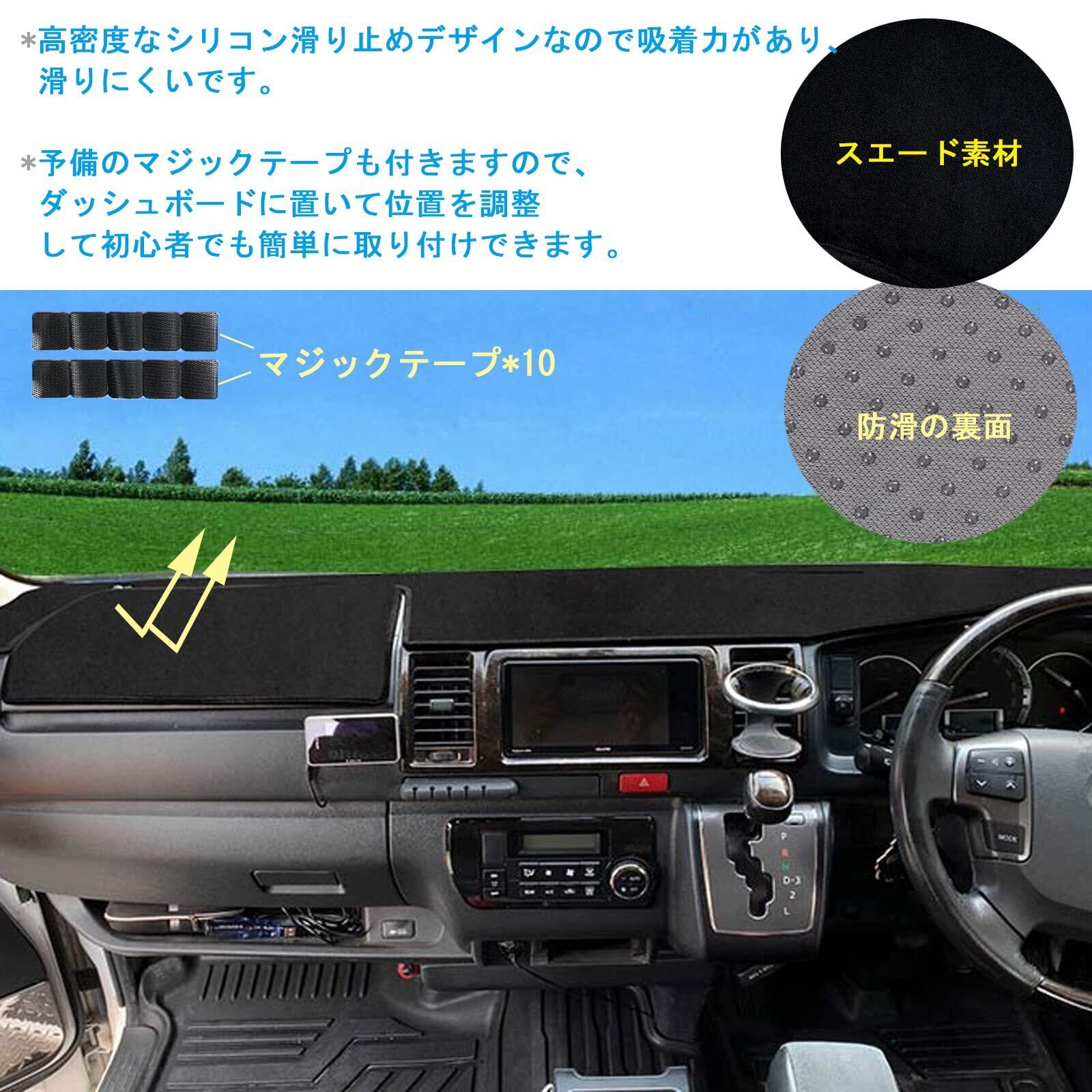 トヨタ ハイエース 200系 標準ボディ用 ダッシュボードマット 2004年8月~ ダッシュボードカバー ダッシュマット 専用設計 日焼け防止 スエード素材 TOYOTA HAICE 200 ダッシュマット カー用品 1枚セット (トヨタ ハイエース 200系 標準ボディ用, ブラック)