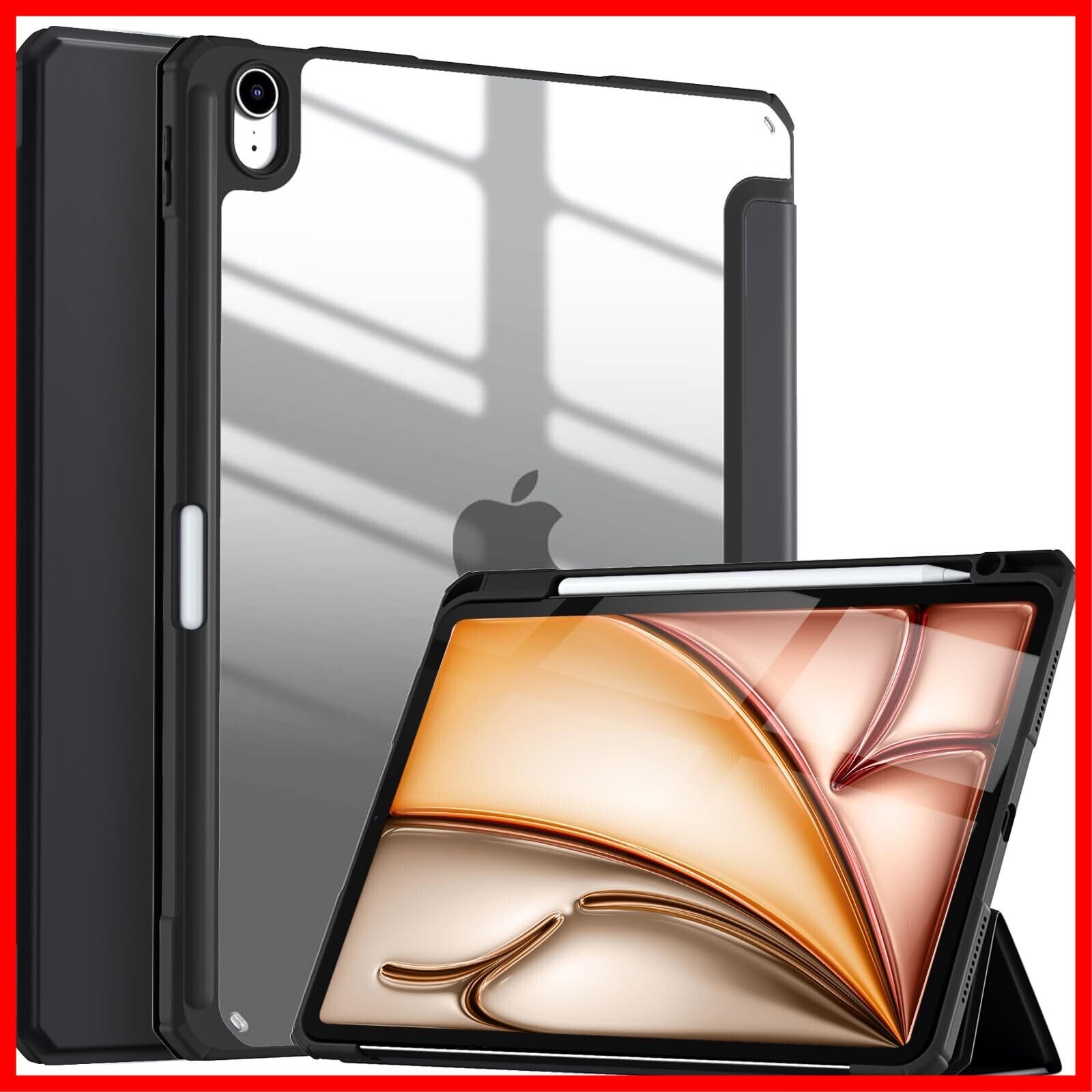 Maledan 対応iPad Air 11インチ ケース(2025 M3)- iPad用 air ケース 2024/M2 Air 第5/4世代 ケース(2022/2020)専用 Pencil収納可能 DIY透明カバー 薄型 衝撃吸収 ブラック