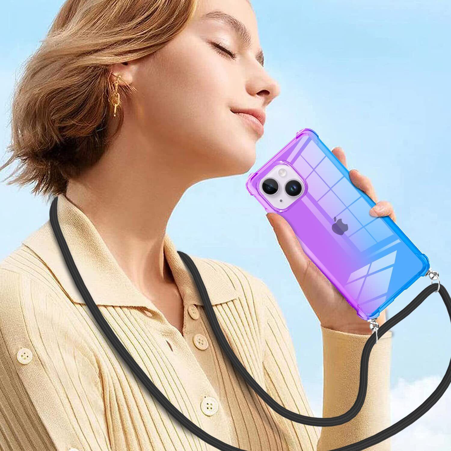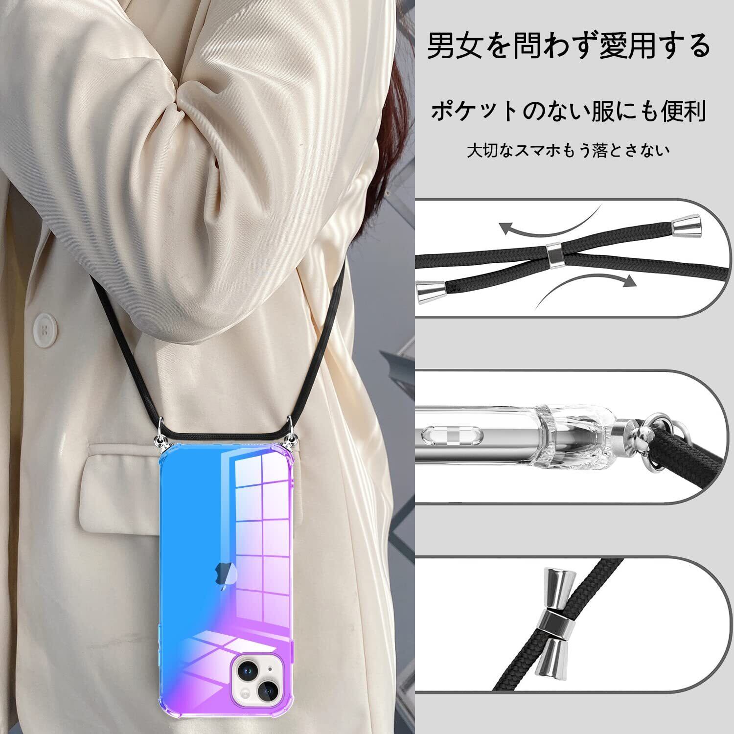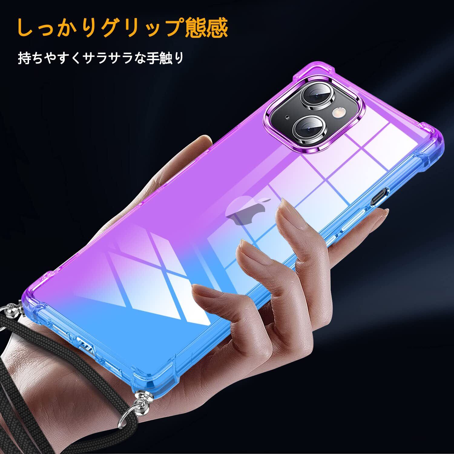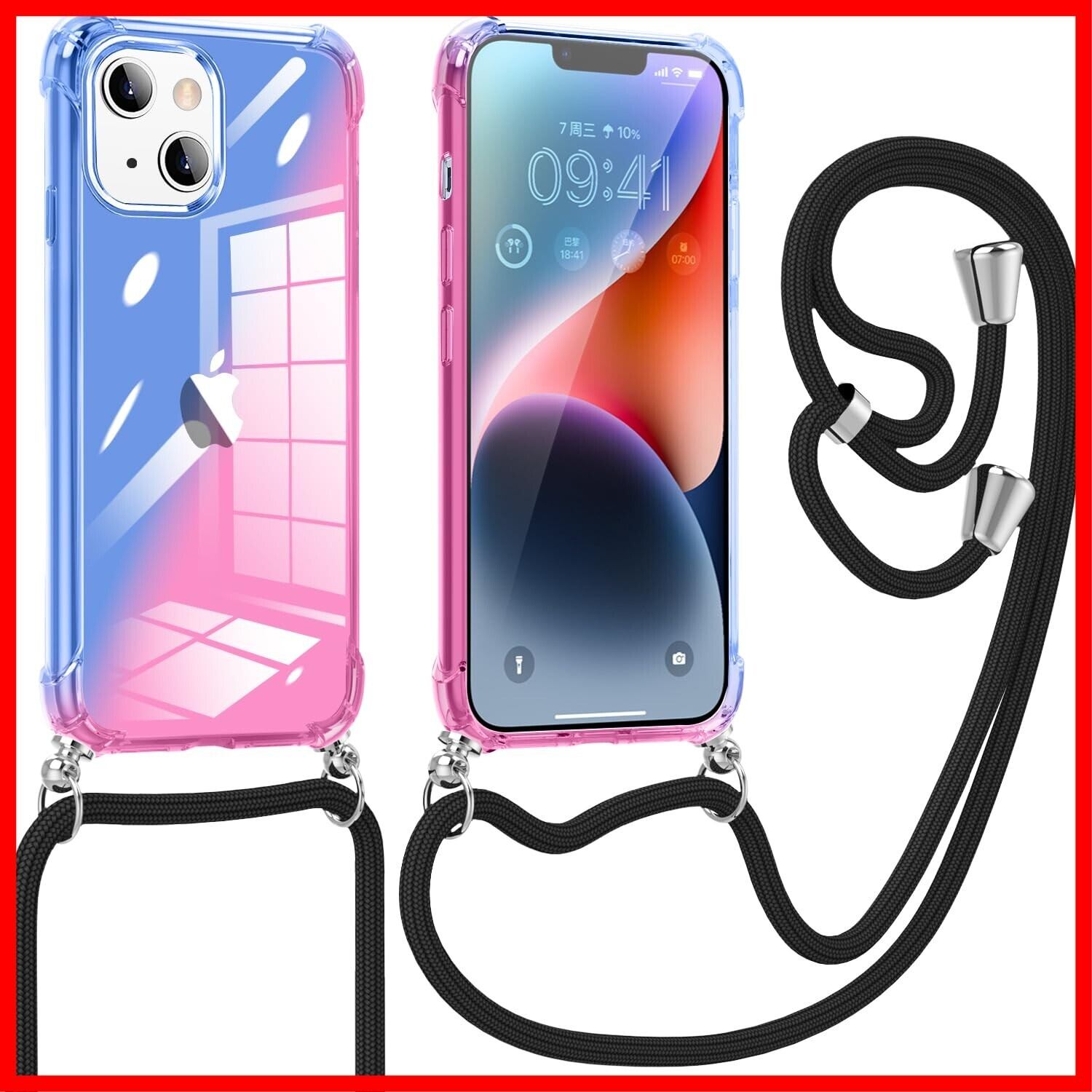 iPhone13 mini ケース クリア ソフト TPU グラデーションケース 耐衝撃 薄型 肩掛け 斜めかけ 縄掛けケース 黄変防止 軽量 一体型 かわいい ファッション 携帯カバー ブルー/ピンク AYS-9-88