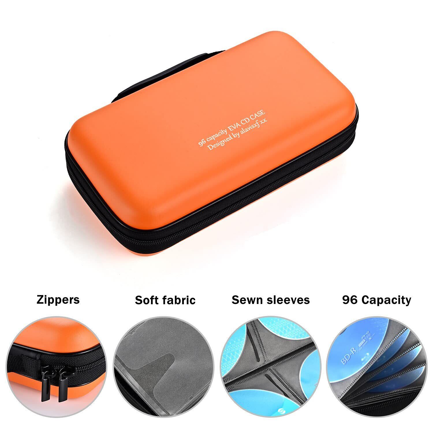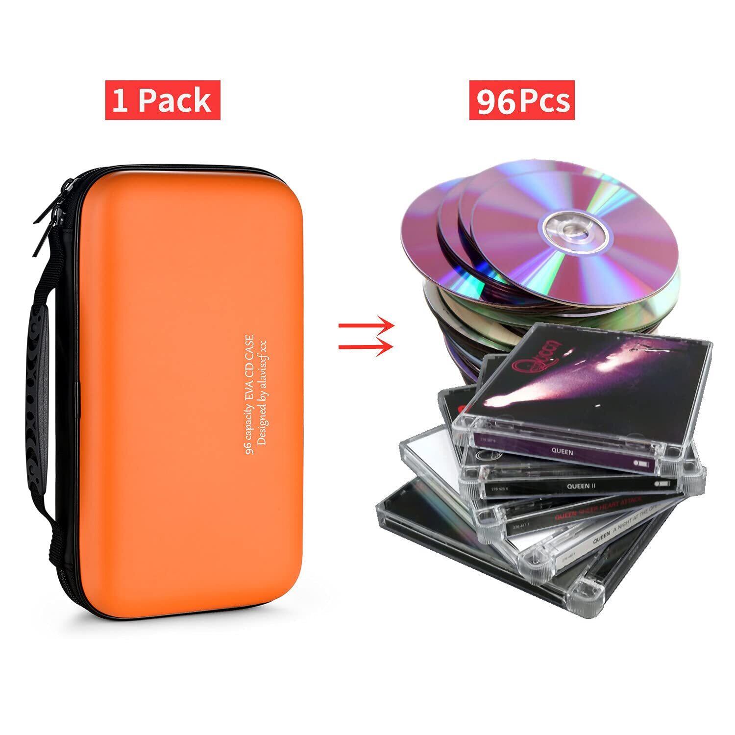 LIOVODE 96枚収納 CDケースポータブルEVA blu-ray ディスク収納ケース 大容量 DVD/VCD 収納 (96枚, オレンジ色 96)