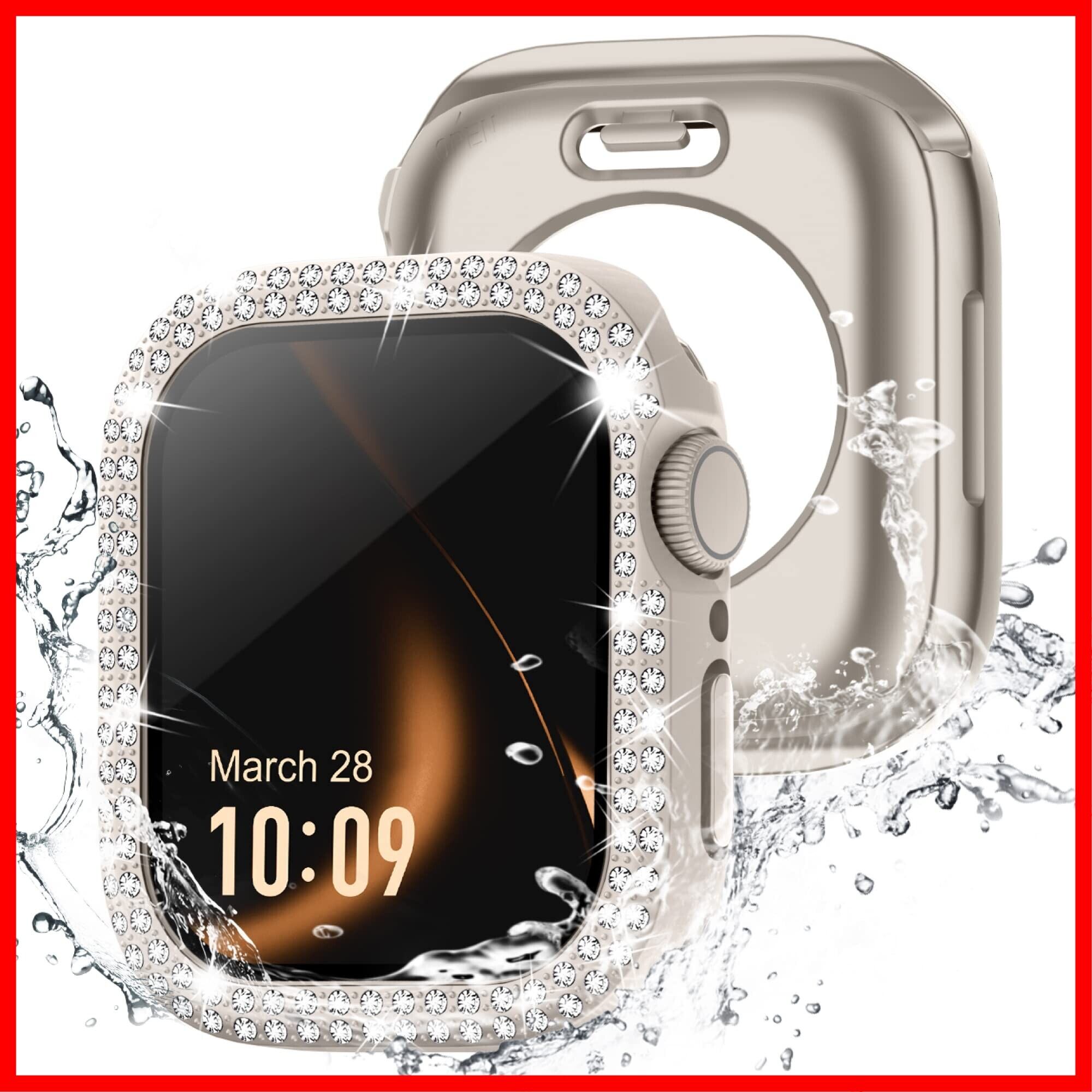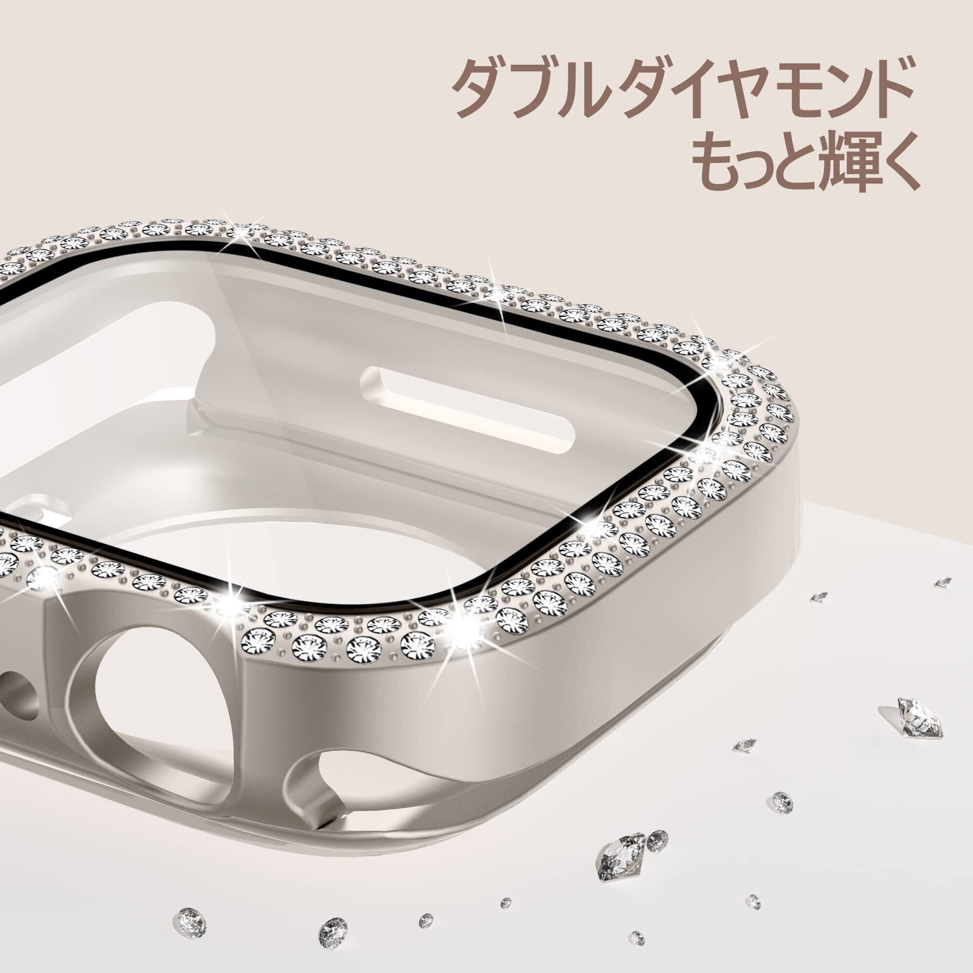 Missair コンパチブル アップルウォッチ カバー キラキラ Apple Watch カバー 防水ケース ダブルダイヤモンド 保護フィルム付き 一体型 IP68完全防水 レディース iWatch ケース Series 6 5 4 SEに対応 スターライト 44mm