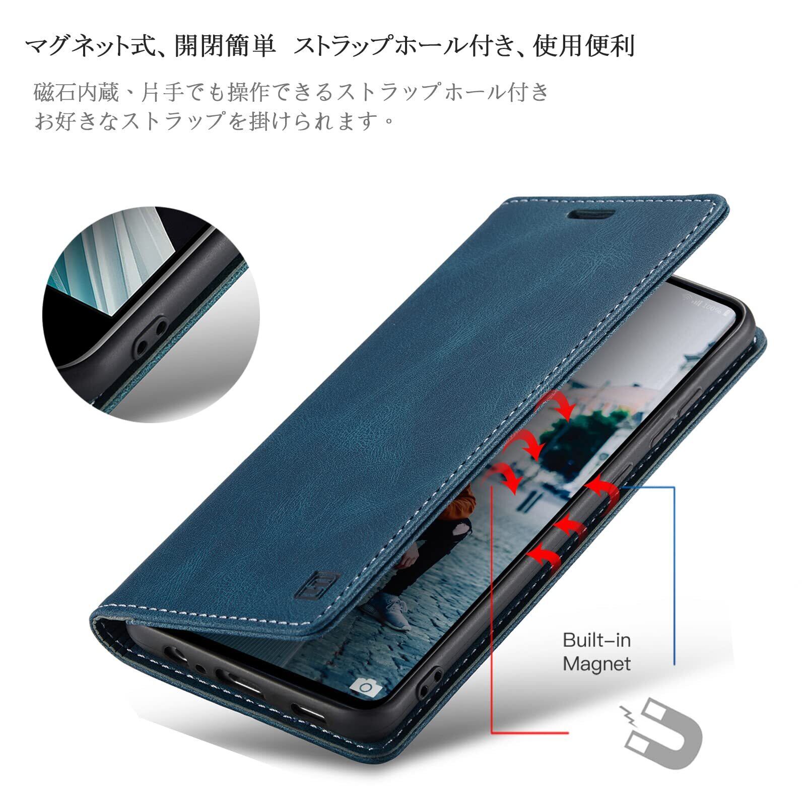 【磁気防止RFID功能 &機能性 4in1】磁気カードを保護するために磁器遮断功能があり、スキミング防止、不正アクセスから大切なクレジットカード、キャッシュカード、IDカードなどの個人情報を守れるRFIDスキミング防止の機能も備えています;①横置きスタンド機能:動画視聴でも手に持つ必要がなく、超楽々動画視聴が可能です;②財布型:ケースの裏側に一つのカードポケットとお札入れのフリーポケット一つあり、ショップでのポイントカード、交通機関でのスムーズな移動をサポートでき、 SUICA / PASMO / ポイントカード / メモ 等収納でき、ちょっととしたお出かけてもこれで十分です;③留め具なし、マグネット内蔵 ベルトなし、片手でも簡単操作できる;④ストラップホールはTPUケースの右下にあり、お好きなストラップを使用し、生活にもっと便利になり、または各種ボタンの使用、カメラ撮影、スピーカーホール等、すべての機能もそのまま立て掛けて稼働します;