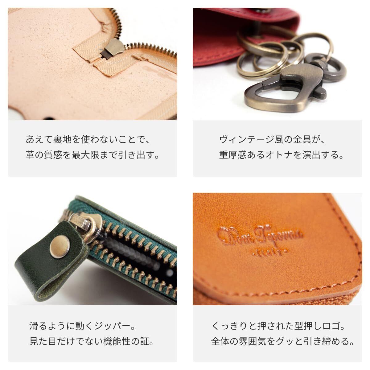 【こだわりのイタリアンレザー】伝統的な製法で仕上げた一枚革を贅沢に使用しました。使い込むほどに色合いが変化するエイジングを楽しめる素材です。美しさだけでなく、堅牢かつしなやかな本革は大切な鍵をしっかりと包み守ります。