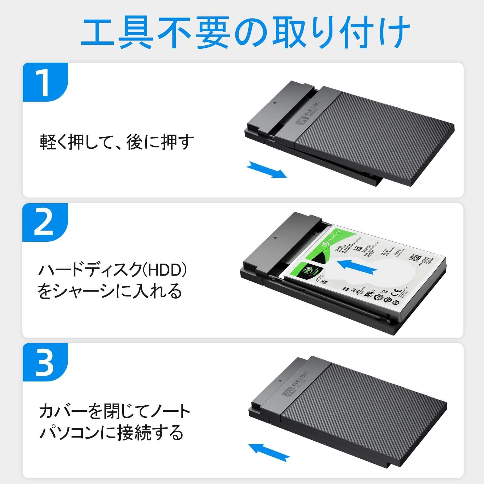 SAN ZANG MASTER 2.5インチ HDD ケース USB 3.1 6Gbps接続 SATA UASP対応 ssd ケース 2.5インチ 工具不要 HDD外付けケース 簡単着脱 ハードディスクケース9.5mm/7mm HDD/SSD対応 2.5インチ ssd ケース Mac OS/Windows/Linux等に対応 【USB C-USB A ケーブル付き】ブラック