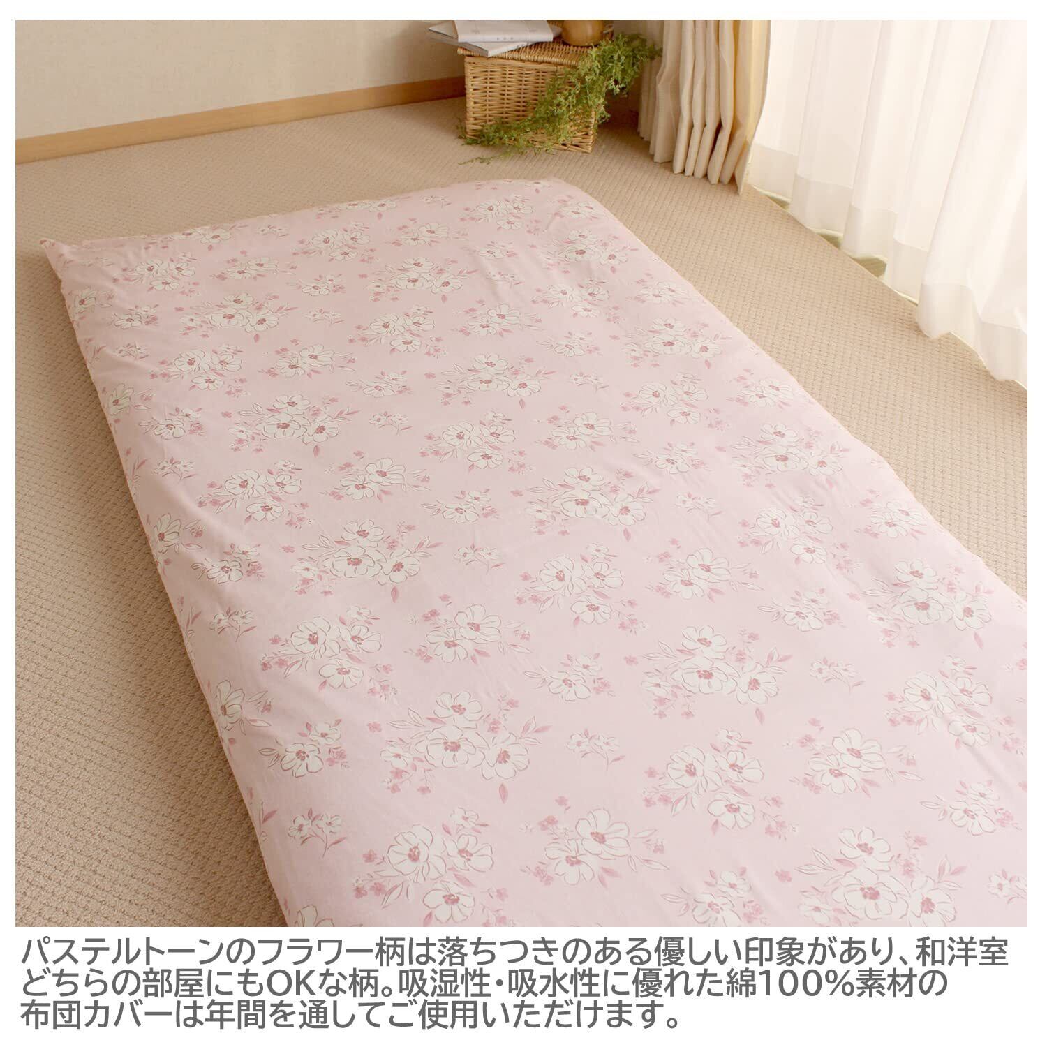 メリーナイト 敷き布団カバー 「アネモネ」 ピンク シングル 約105×205cm 綿100% 吸湿性 通気性 心地よい肌触り オールシーズン 洗える CT13013-16