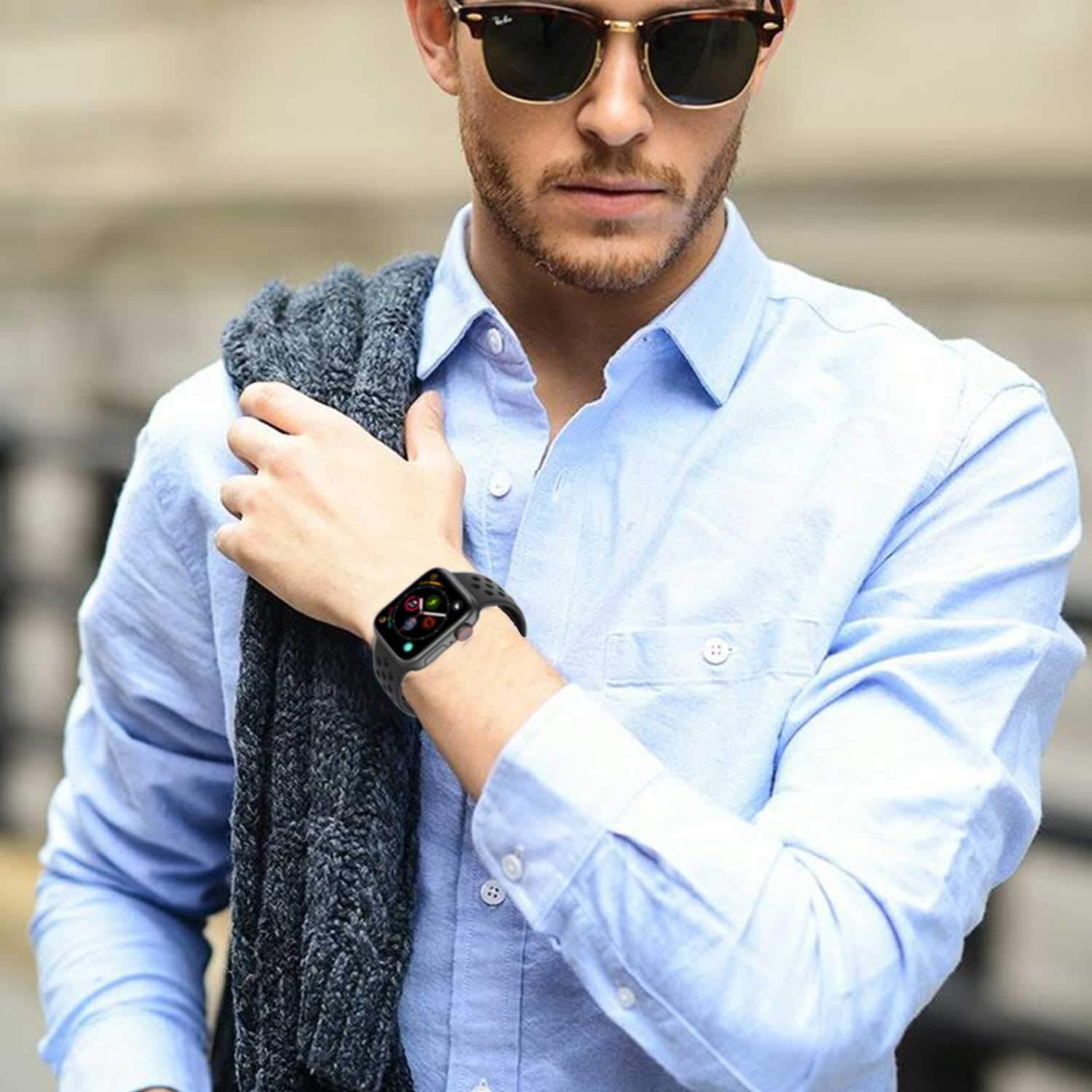 ZENGYQI コンパチブル Apple Watch バンド 38mm 40mm 41mm 42mm 44mm 45mm 49mm,ソフトシリコンバンド 通気性 スポーツシリコンストラップリストバンド交換バンドリストバンド iWatch series SE/8/7/6/5/4/3/2/1に対応 (42mm/44mm/45mm/49mm, 暗灰色/黒)