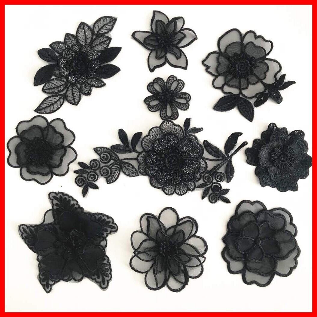 Sweetimes レース生地 刺繍花 縫製 DIY 服 工芸品の装飾 パッチ アップリケ モチーフ 10枚セットNo.16 (ブラック10枚セット①)