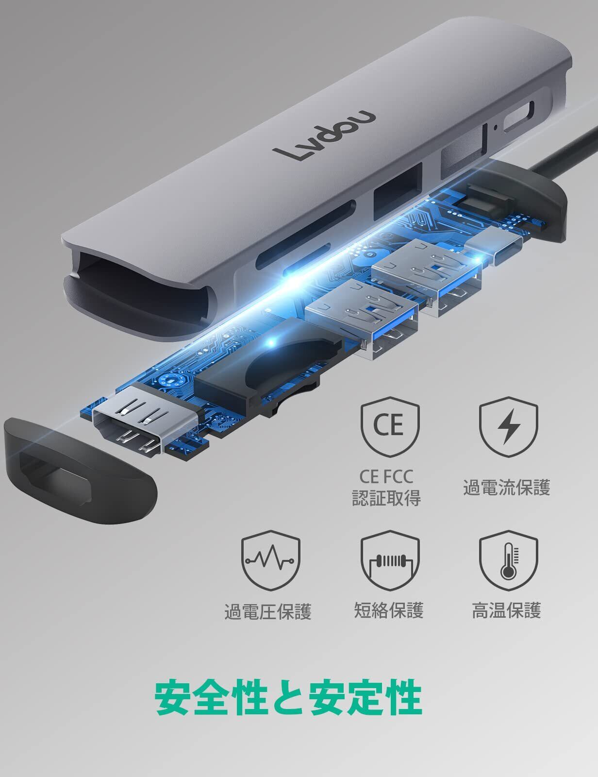 2024高機能版 USB C ハブ 6-in-1 Lvdou アダプタ|100W PD充電対応・4K HDMI・MicroSD/SDカードリーダー搭載|MacBook Pro/Air, iPad Pro, iPhone 15/16, Surface Pro, Switch, Galaxy Book, Chromebook対応 ノートPC/タブレット用