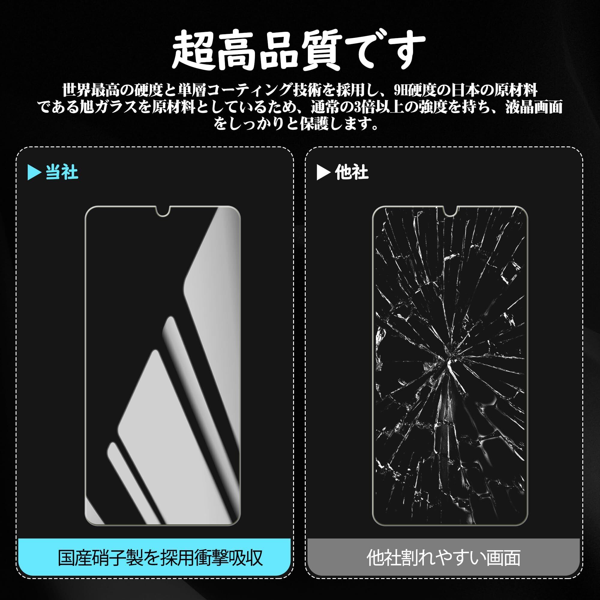 【9H硬度・日本製ガラス素材】日本旭硝子製ガラス素材採用 最上級強度のガラスを使用し表面硬度は9H。万が一スマホを落としてガラスが割れても、 ガラス破片が飛び散らないような安心設計。 ” 飛散防止 ” が、ガラス破片から守ります。