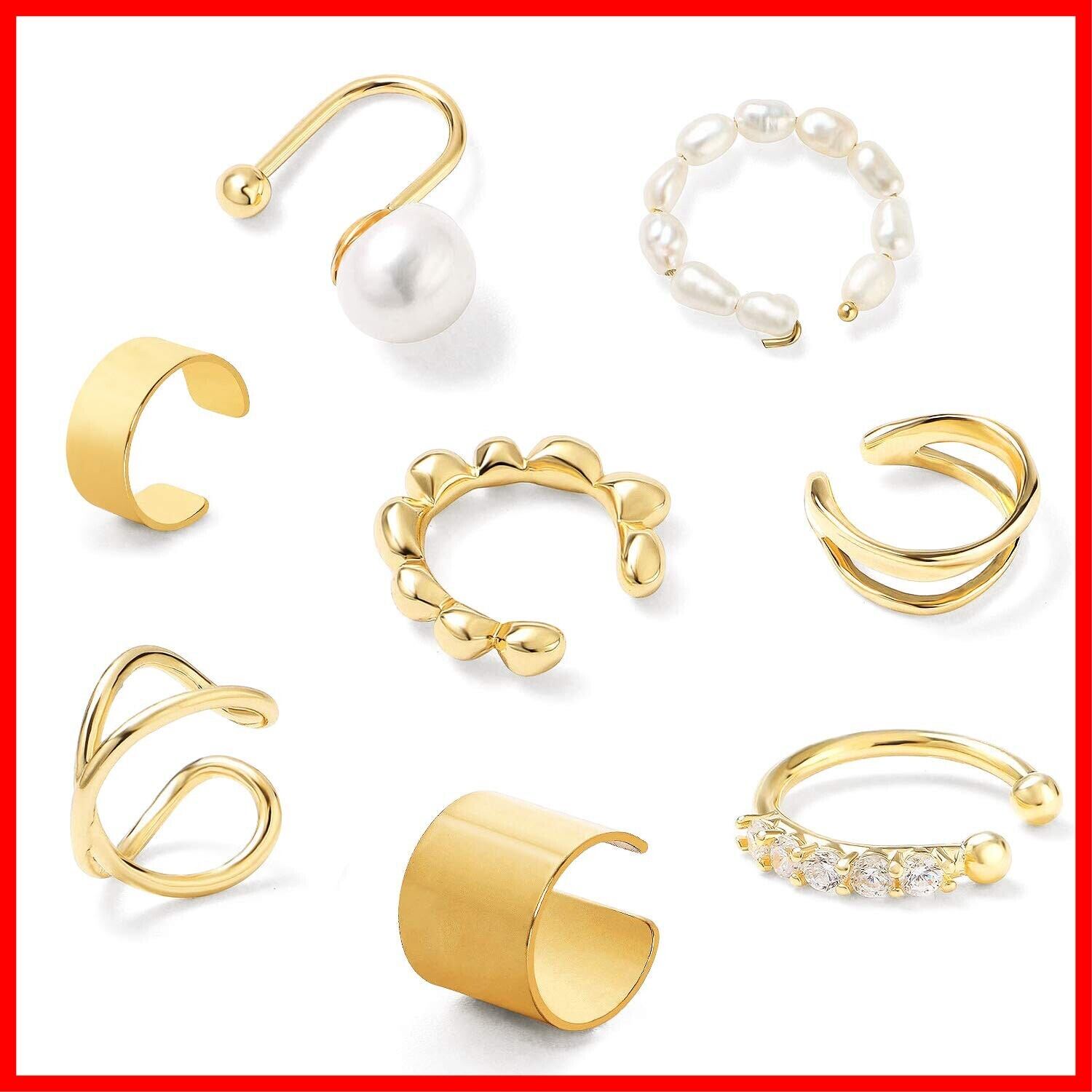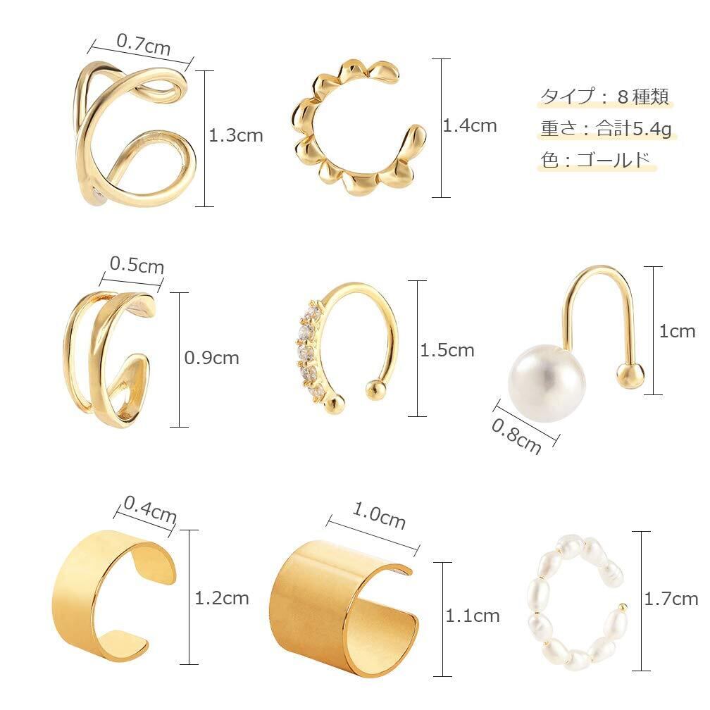 Lasoll イヤーカフ 8個入り フェイクピアス ノンホールピアス レディース イヤリング 軟骨 挟む 重ね付け ピアス穴不要 アレルギー対応 おしゃれ 誕生日 母の日 結婚式 記念日 合金製 ゴールド