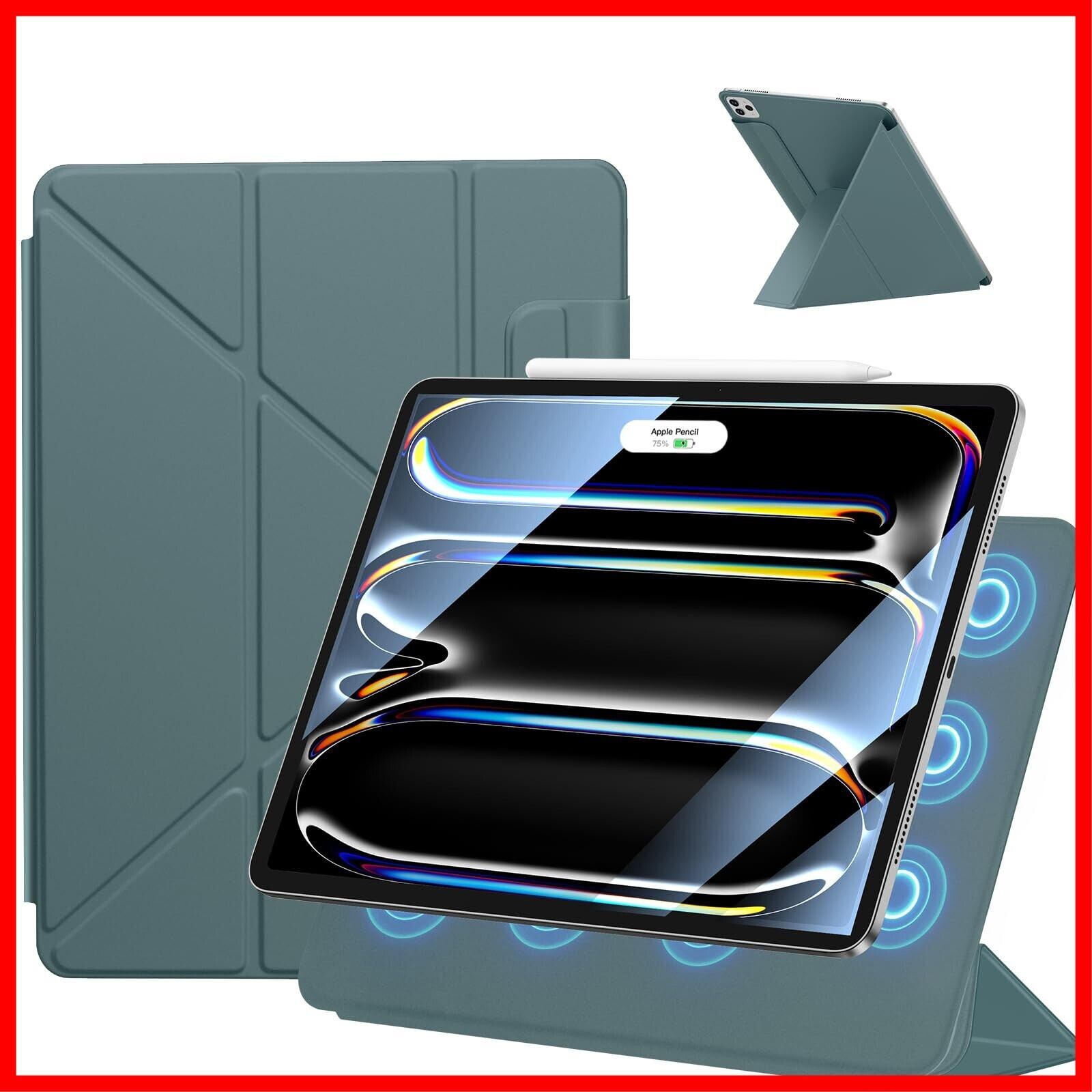 SANDUODD iPad Pro 11インチ ケース M4 (2024・第5世代)専用 強力マグネット吸着式 横置&縦置 角度調整可能 三角形スタンド Pencilホルダー付き 極薄 軽量 オートスリープ/ウェイク対応 (グリーン)