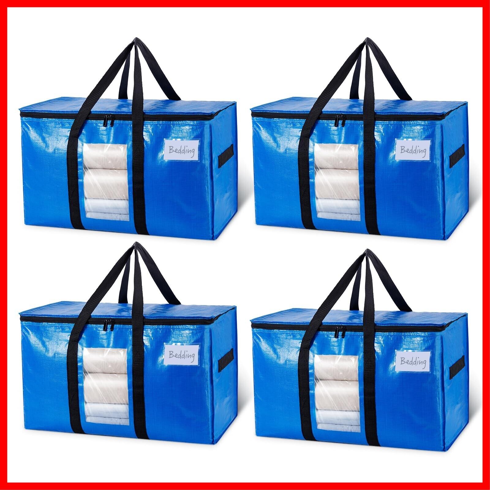 100L大容量、収納力抜群:抜群な特大引越しバッグの寸法:70 cm 35 cm 42 cm、4 パック。 両端のジッパーと中央に大きな開口部があるため、衣類、おもちゃ、靴、タオル、必需品、枕、寝具、シーツ、毛布、洗濯物、クリスマス飾りなどを簡単に収納できます