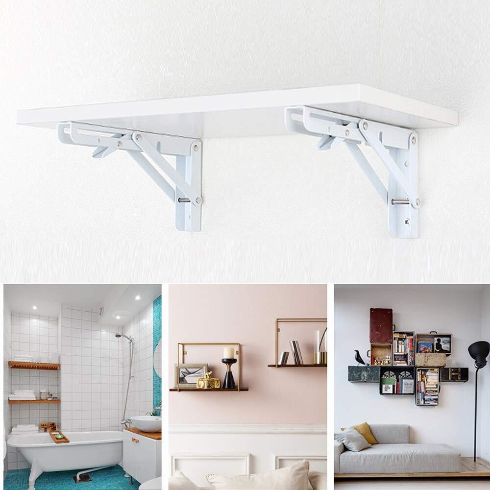 LUCKYBEE 2本セット 棚受け金具 L字型 棚支え ブラケット 折りたたみ アイアン 金具 耐荷重50kg (20cm, ホワイト)