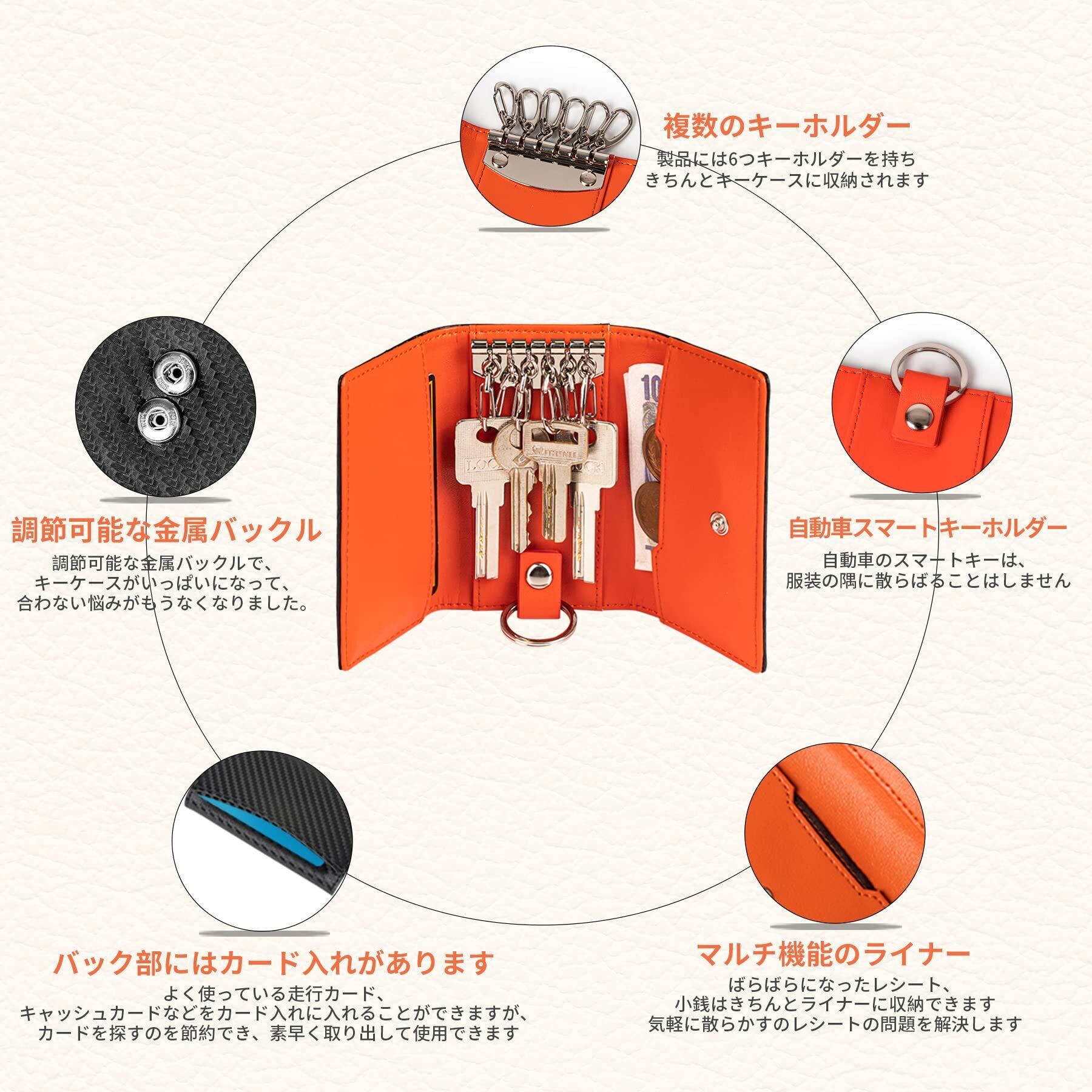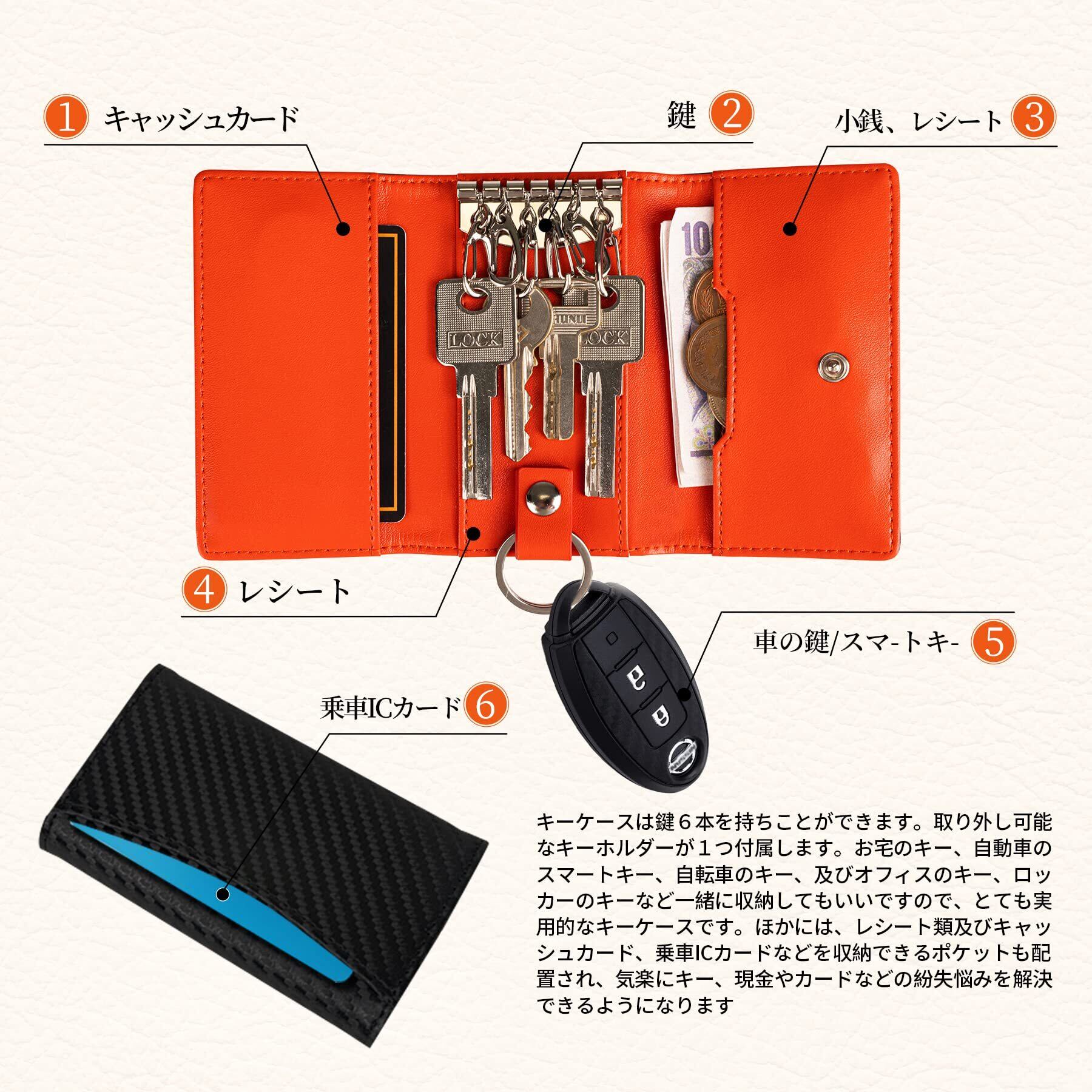 【多機能&便利】キーケースには6本の鍵を収納できます。取り外し可能なキーホルダー付き。住宅用キー、車のスマートキー、自転車のキー、オフィスキーやロッカーキーなどを一緒に収納できます。さらに、レシートやキャッシュカード、ICカードなども収納可能なポケットがあり、紛失の心配を解消します。
