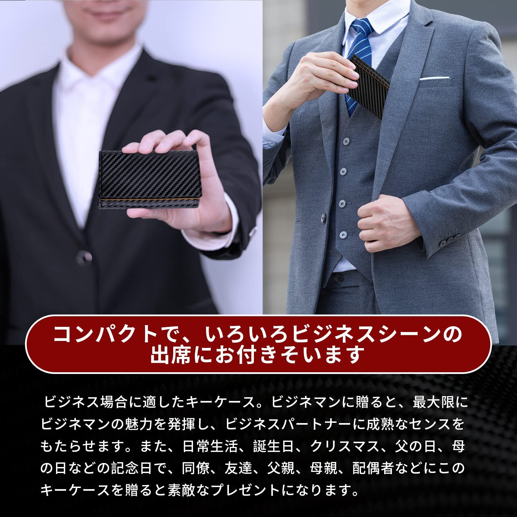 【耐久性&高品質素材】厳選されたカーボンレザーを使用したキーケース。耐摩耗性と耐傷性があり、長期間の使用に耐えられます。熟練した職人によって作られた上品で洗練されたデザインが高級感を演出します。