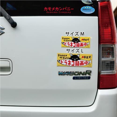 ドライブレコーダー 録画中 猫 ステッカー Mサイズ 【マグネット】防水・耐候仕様/ドラネコ録画中|黒猫デザイン・あおり運転防止に最適