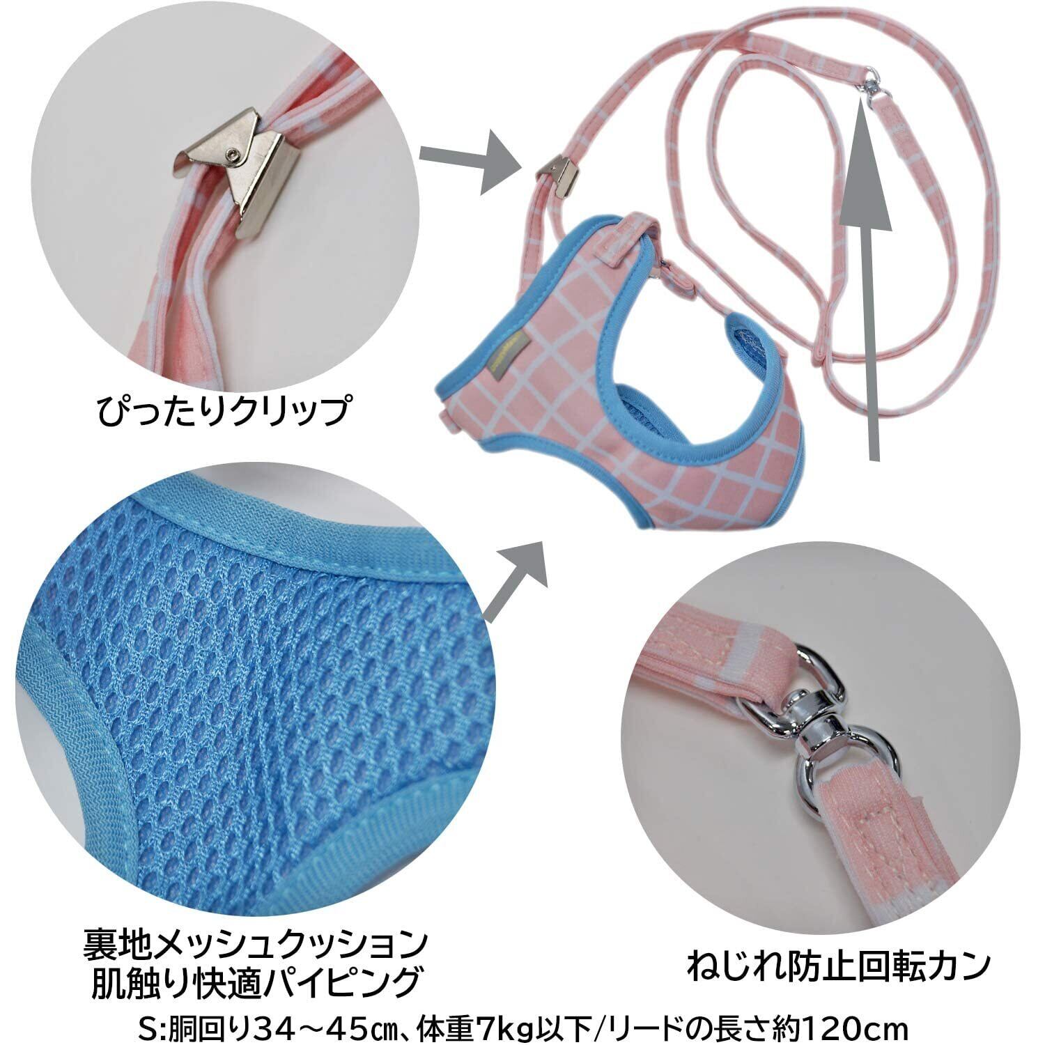 ●やさしい胸当てタイプのハーネスとリードが一体化。●胸当ては柔らかメッシュ生地。ふんわりやさしく、通気性も確保。●前足を通して、背中部のぴったりクリップを下げるだけの簡単装着。●簡単クリップを上下にずらすだけで簡単にやさしいベストバランスに調整できる。●プリントデザインは「おそとたんけん」オリジナル。胴回り34~45㎝、体重7kg以下用。リードの長さ約120cm。 原材料・成分 ポリエステル、スチール、亜鉛合金 使用方法 取扱説明書の【使用方法】に従って装着し、調節、使用する。クリップを上げて前足を通します。→しめつけすぎないように少し余裕をもたせて取り付け、はずれないか確認します。 続きを見る