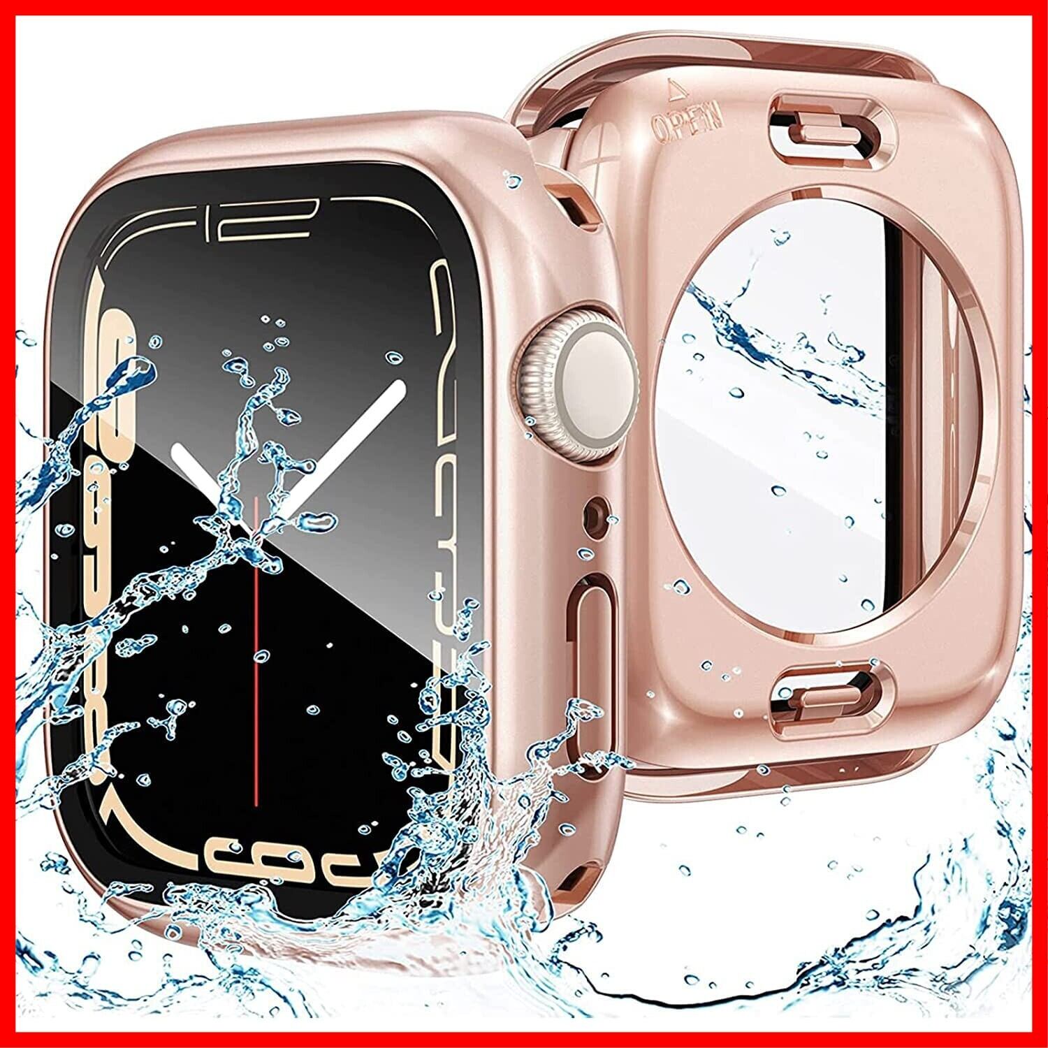 [AMAPC] for Apple Watch ケース 45mm 44mm 対応 と互換性があり 数秒で Ultra シリーズの外観に変換できます 360度全面防水 バンド 水泳・スポーツ専用 ガラスフィルム 一体型 apple watch 用 カバー 360フルボディ防水 アップルウォッチ ケース Series9/8/7 45mm対応 ローズゴールド