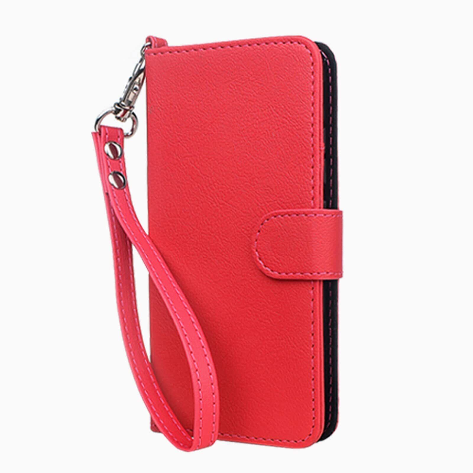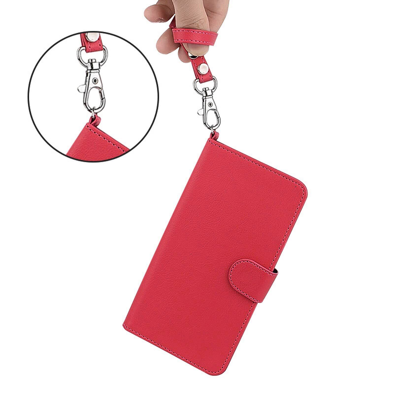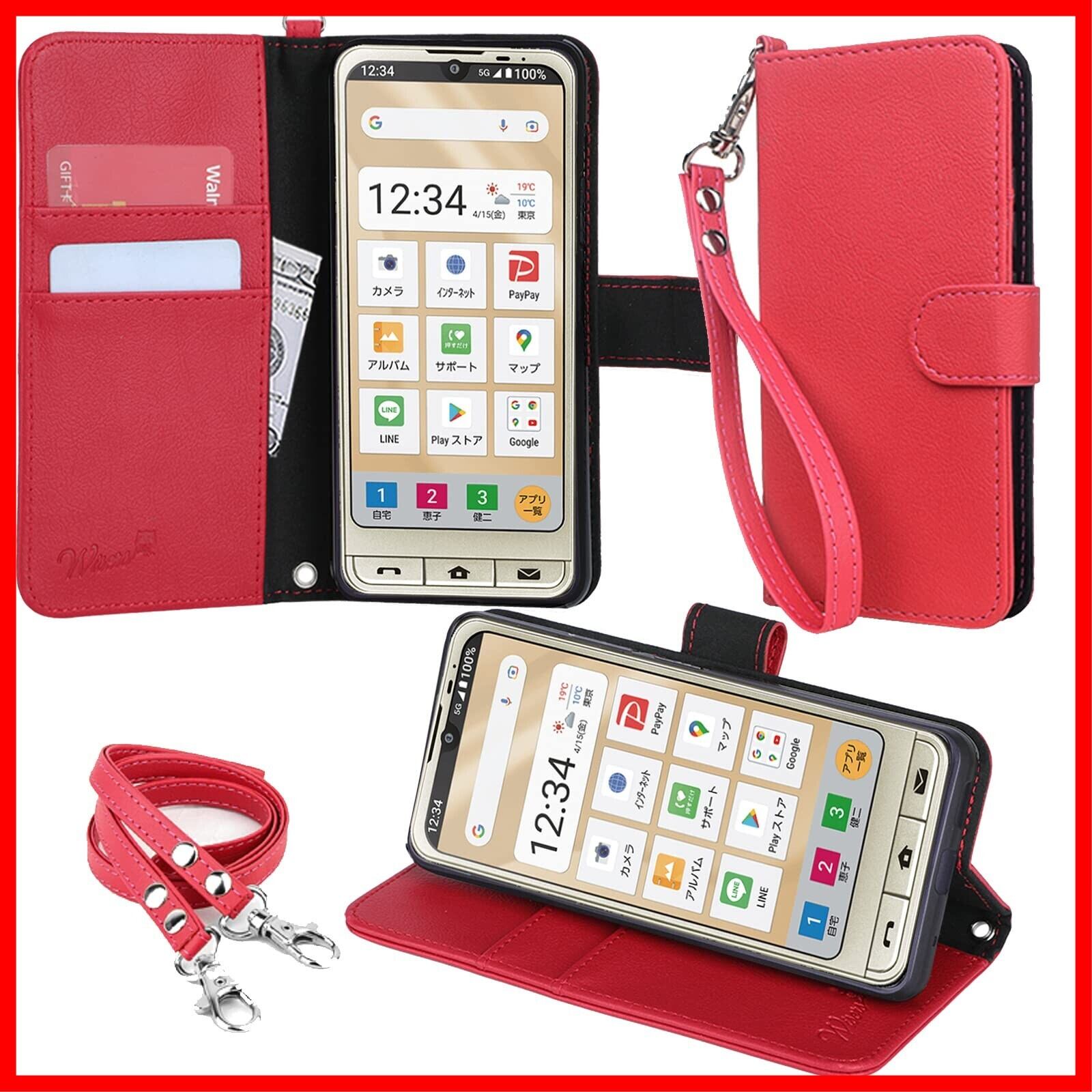 wisers シンプルスマホ6 A201SH シンプルスマホ7 A404SH Basio Active SHG09 Basio Active2 SHG12 対応 手帳型スマホケース (レッド) 牛革調PUレザー (カードホルダー/スタンド機能付き) ストラップ2種付き(ハンドストラップ/ネックストラップ) プレゼント