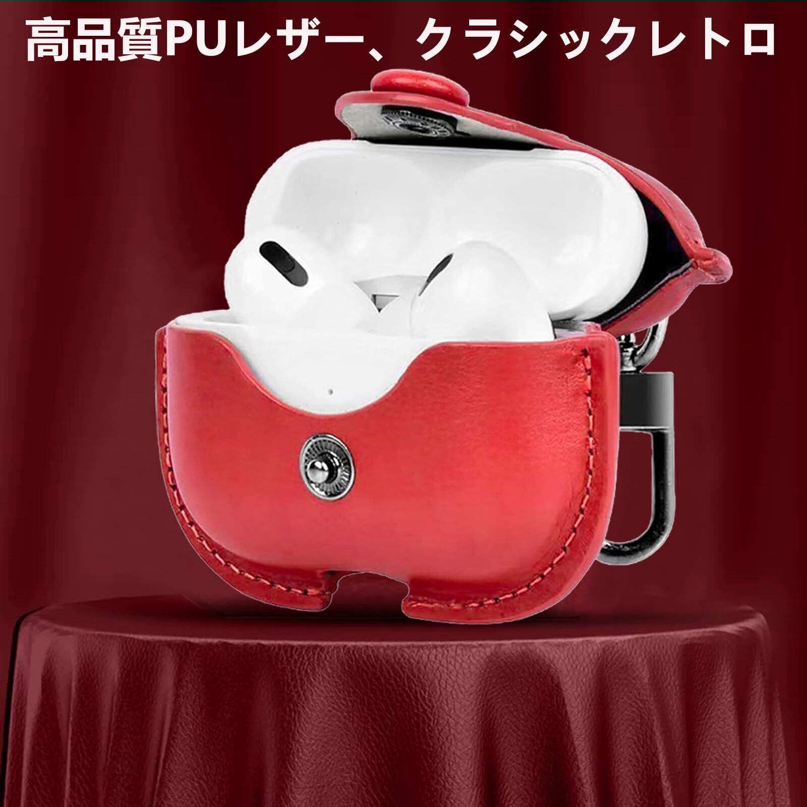 CIOODDW Airpods Pro2 ケース対応 airpods pro 第一世代/第二世代 高級本革 PUレザー airpods pro2 ケース 革 全面保護 充電 LEDライトが見える 耐衝撃 軽量 キズ防止 おしゃれ ワイヤレス充電対応 キーホルダー付き airpods pro ケース(レッド)