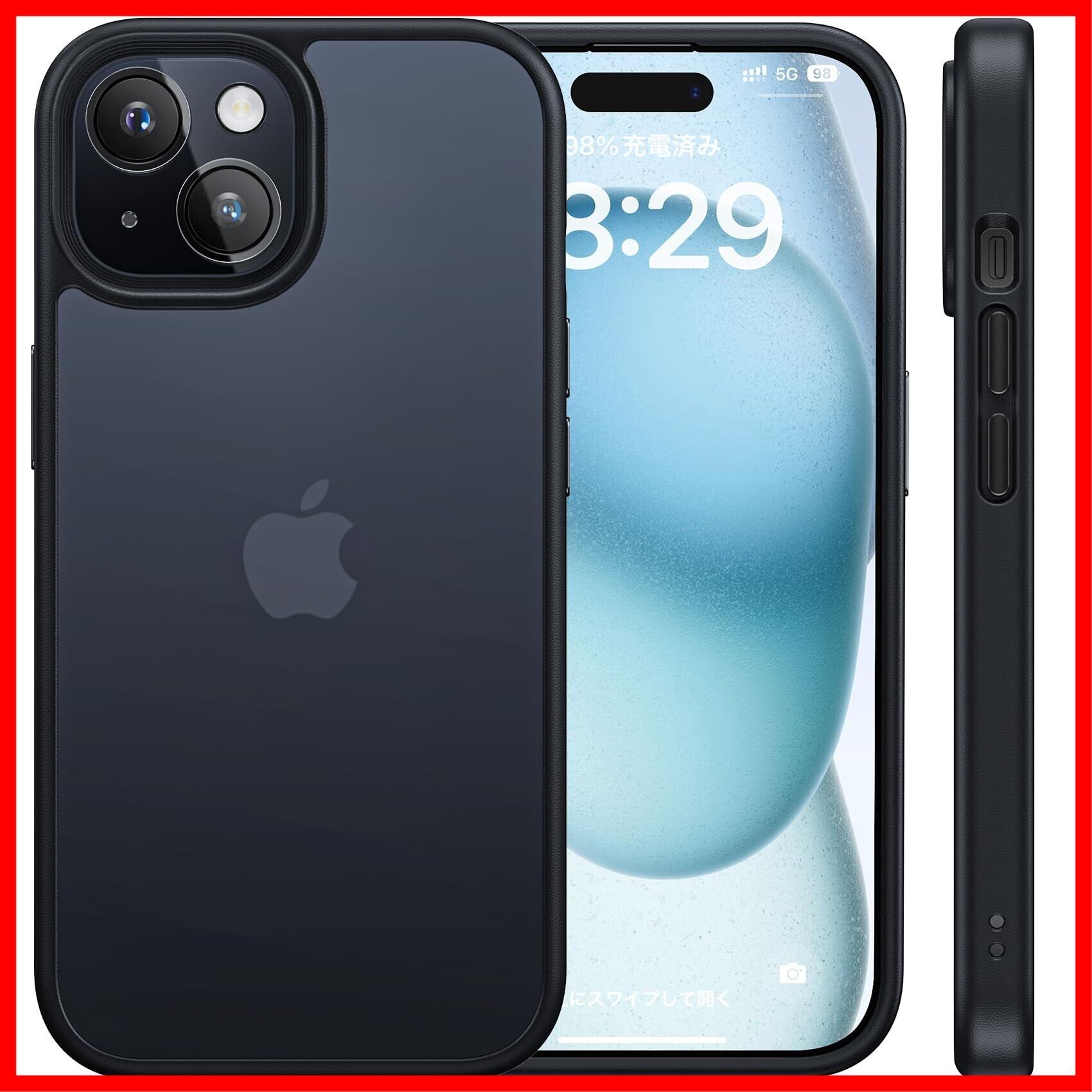 【半透明・マットな仕上げ】背面のポリカーボネートは、耐久性や耐摩耗性に優れ、マットな質感でサラサラしており触り心地抜群です。表面には指紋防止ナノオコーティングを施しており、指紋がつく心配はありません。特に、背面は半透明で、高級感と神秘感が溢れ、iPhone15Plusのかっこいいリンゴロゴが見えます。