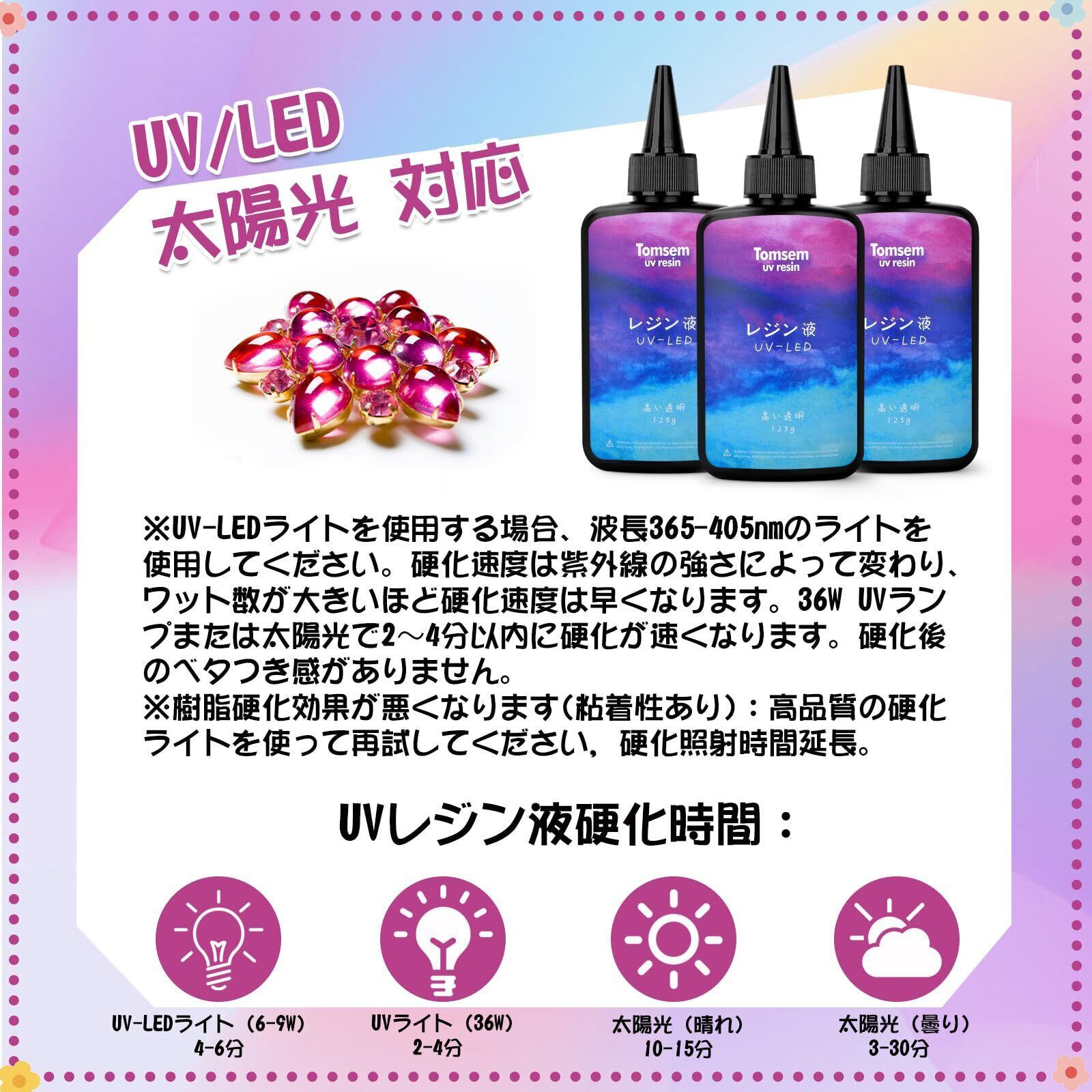 UV-LED対応と急速硬化:最新樹脂仕様、硬化時間が短い。UVレジン液は紫外線ランプやLEDランプと組み合わせて使用できます。太陽光でも簡単に液体を硬化させることができます。経験者も初心者も使いやすいです。