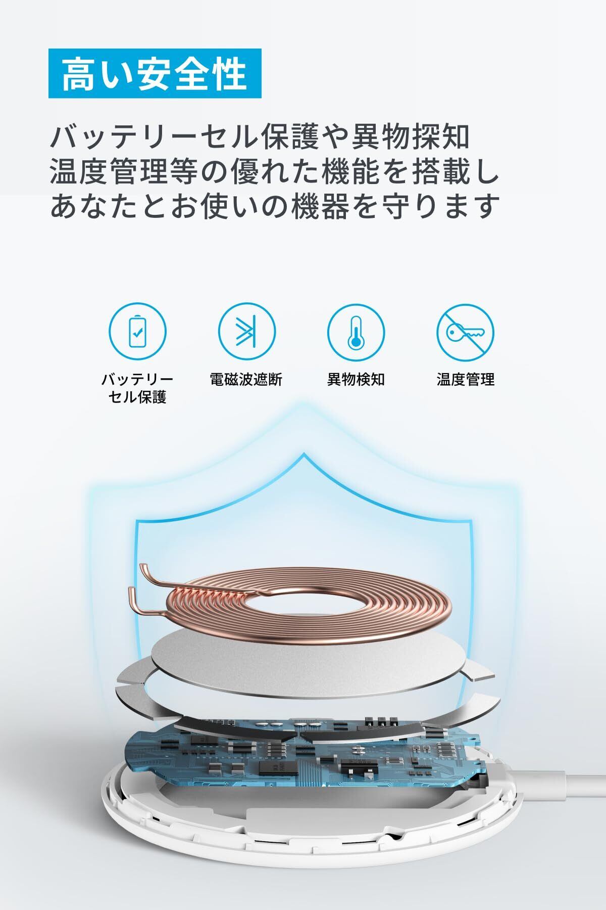 高い安全性:異物探知や温度管理等の優れた機能を搭載しあなたとお使いの機器を守ります。