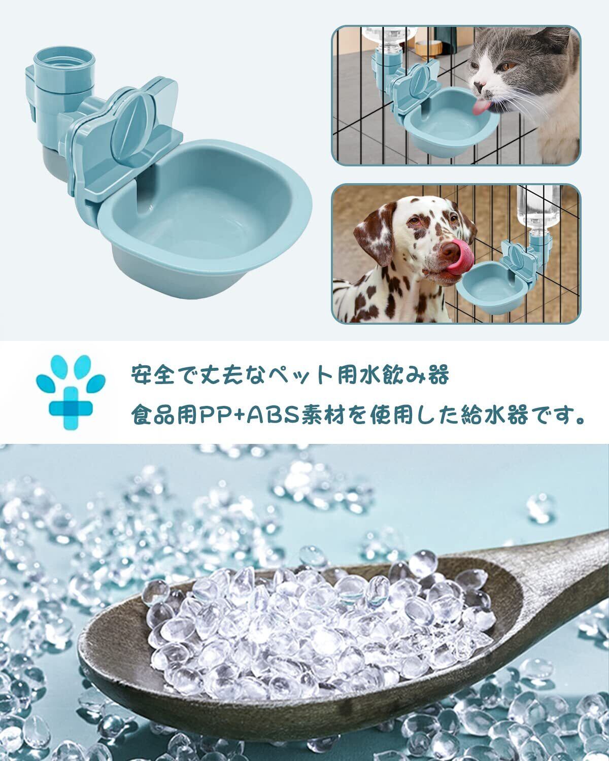 Beraypoo 犬 猫 水飲み器 給水器 ペットボトル 使用可能 ケージ 取付型 電源不要 お留守番対応 熱中症を防ぐ 転倒防止 漏れ防止 ペット用品 (ライトブルー, 水飲み器)