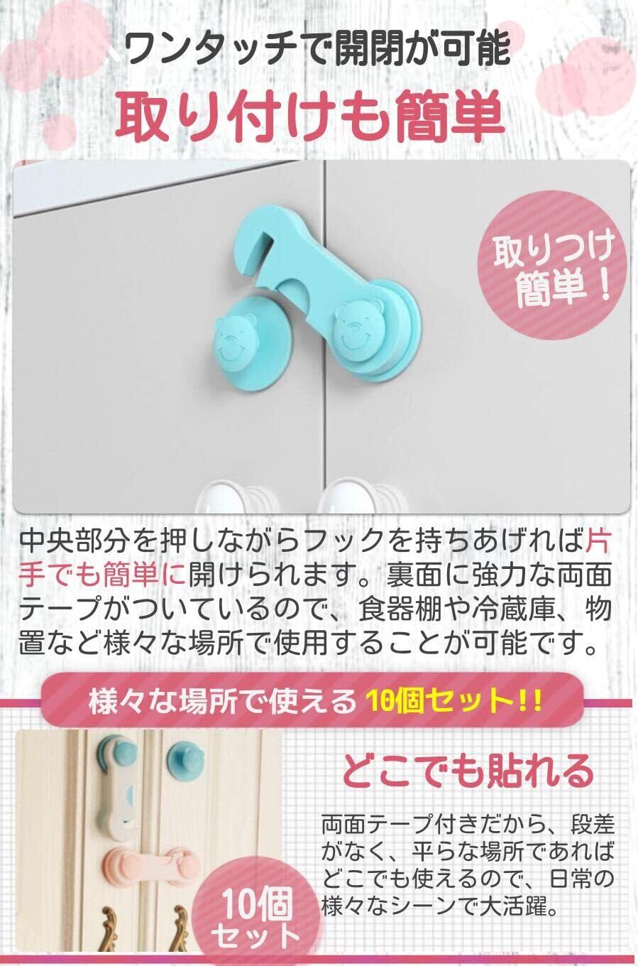fogman ロック 引き出し ドア キャビネット 開き戸 食器棚 ストッパー 耐震 10個セット (ホワイト)