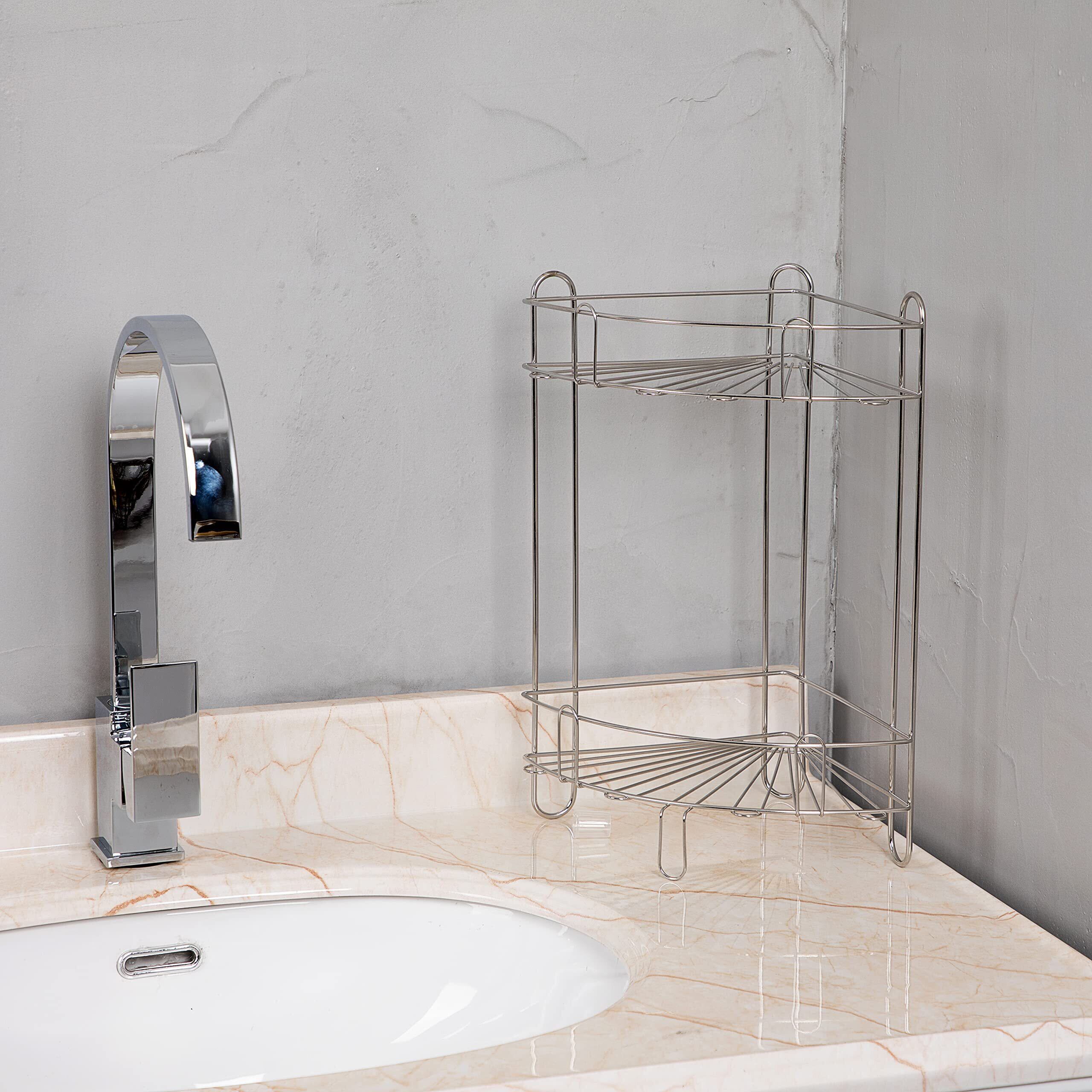 錆びに強いコーナー浴室ラック シャンプーラック 2段 お風呂ラック オールステンレス製 バスラック 小物収納 清潔 汚れに強い 丈夫
