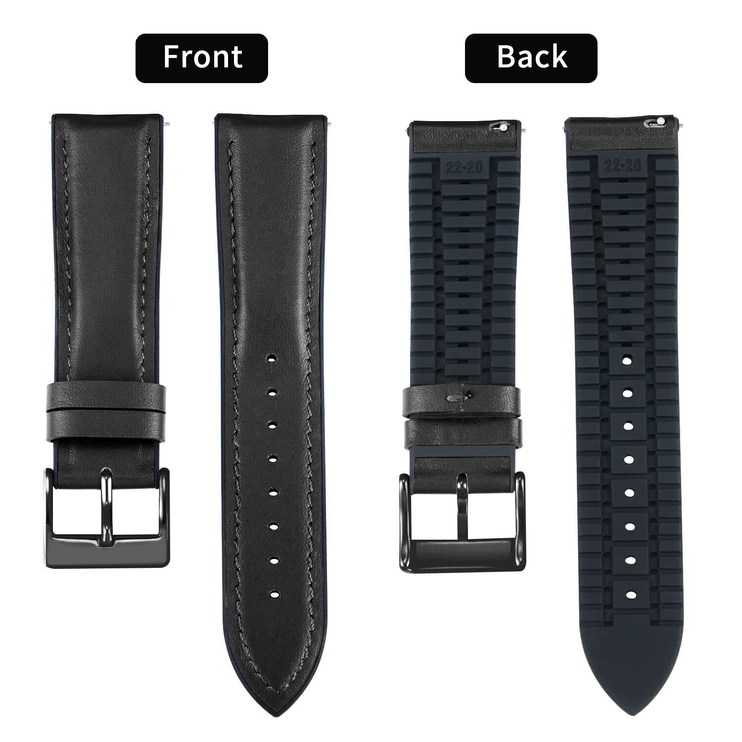 [BINLUN] レザー 時計バンド 内側のラバー 通気性 ハイブリッド クイックリリースウォッチベルト 腕時計ベルト スマートウォッチベルト 男女通用 (ブラック,22mm,ブラックバックル)